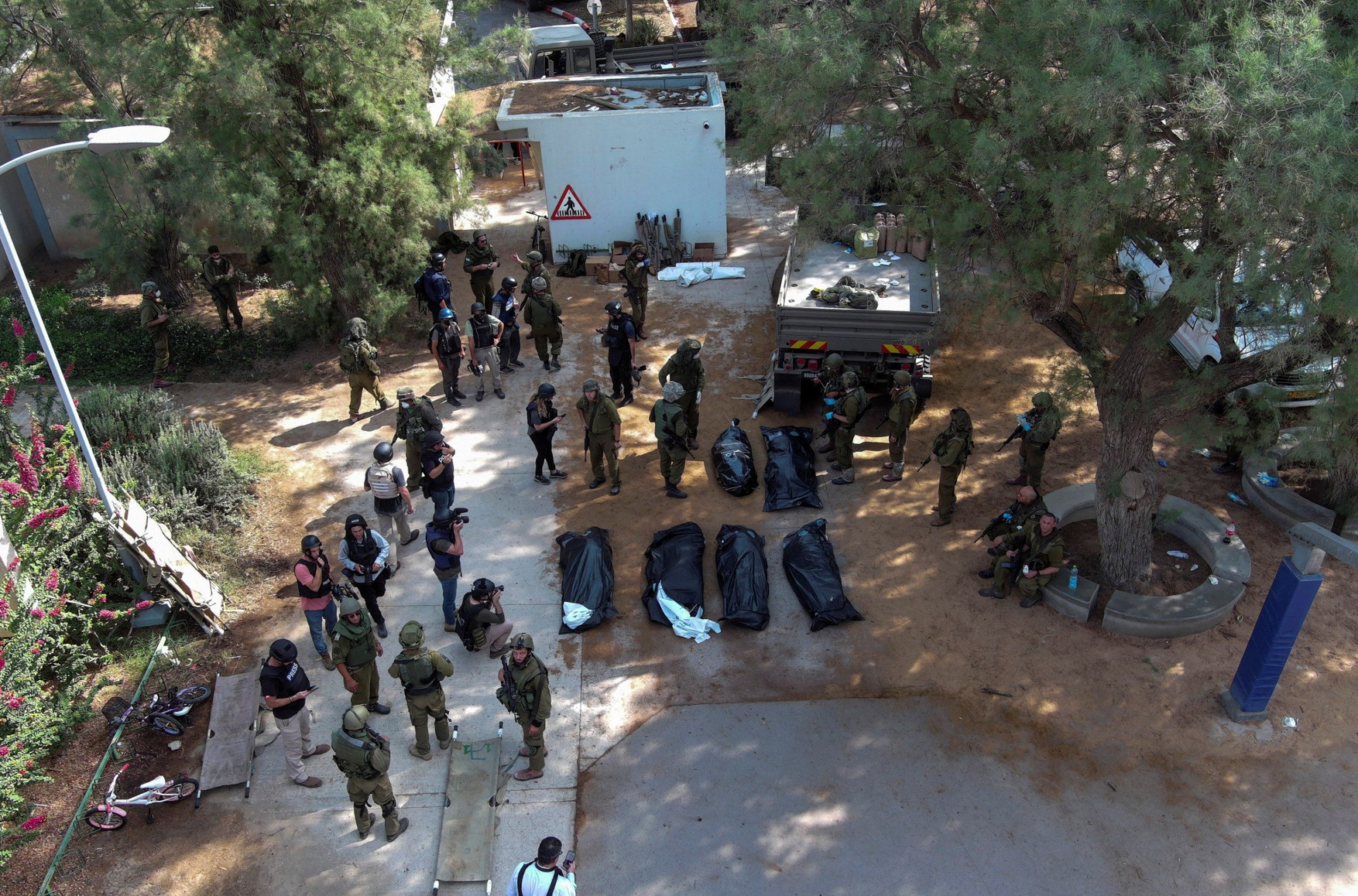 «Они [израильские солдаты] были готовы к худшему, но то, что они увидели, превосходит все, что только можно себе представить. Некоторые солдаты говорят, что они находили младенцев с отрезанными головами, целые семьи были застрелены в своих кроватях. На каталках вывезли около 40 младенцев и маленьких детей».