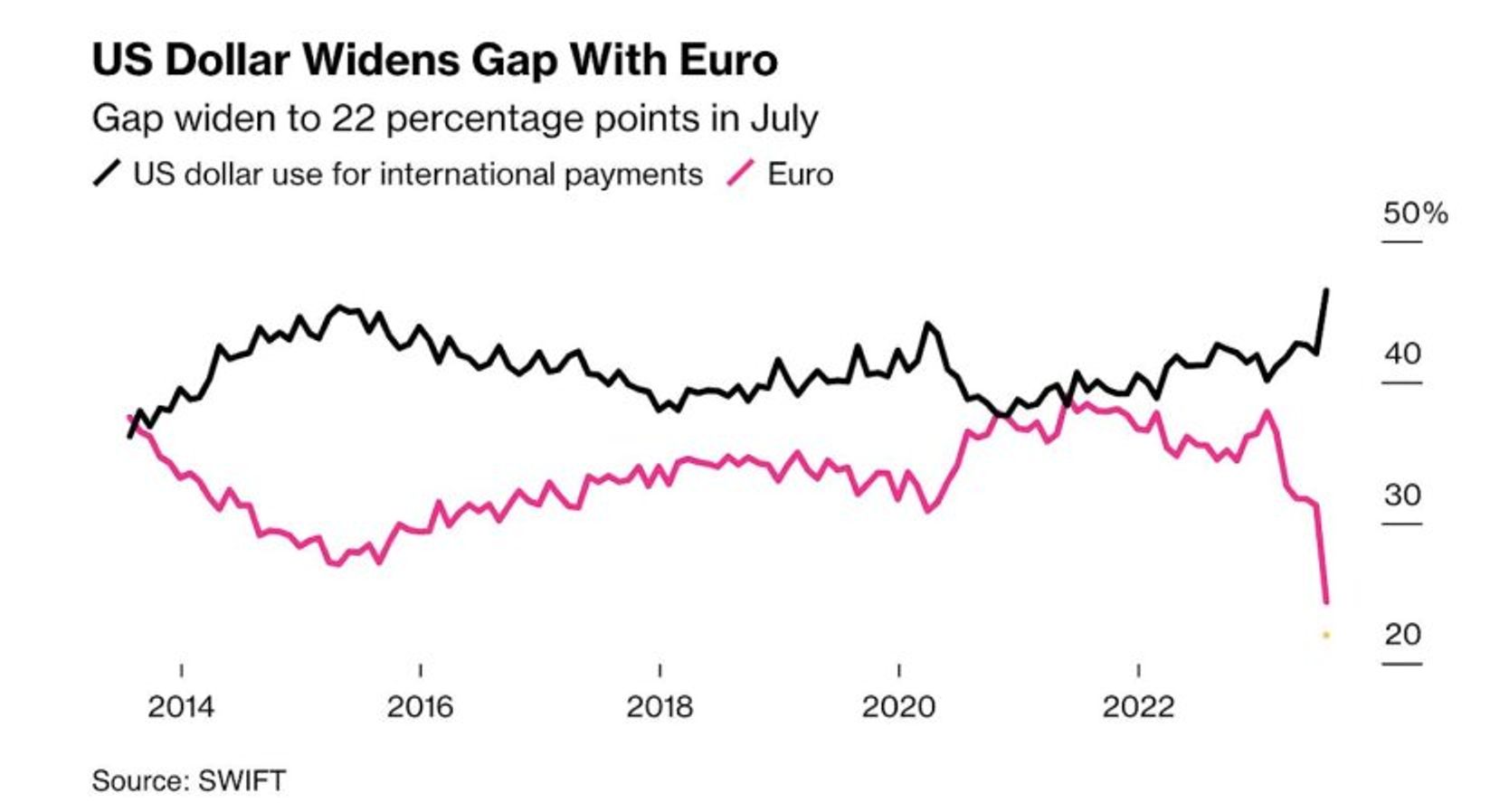 The Insider уже тогда отметил, что доля доллара в международных расчетах только растет. А к моменту заявления Фримена она достигла многолетнего максимума.