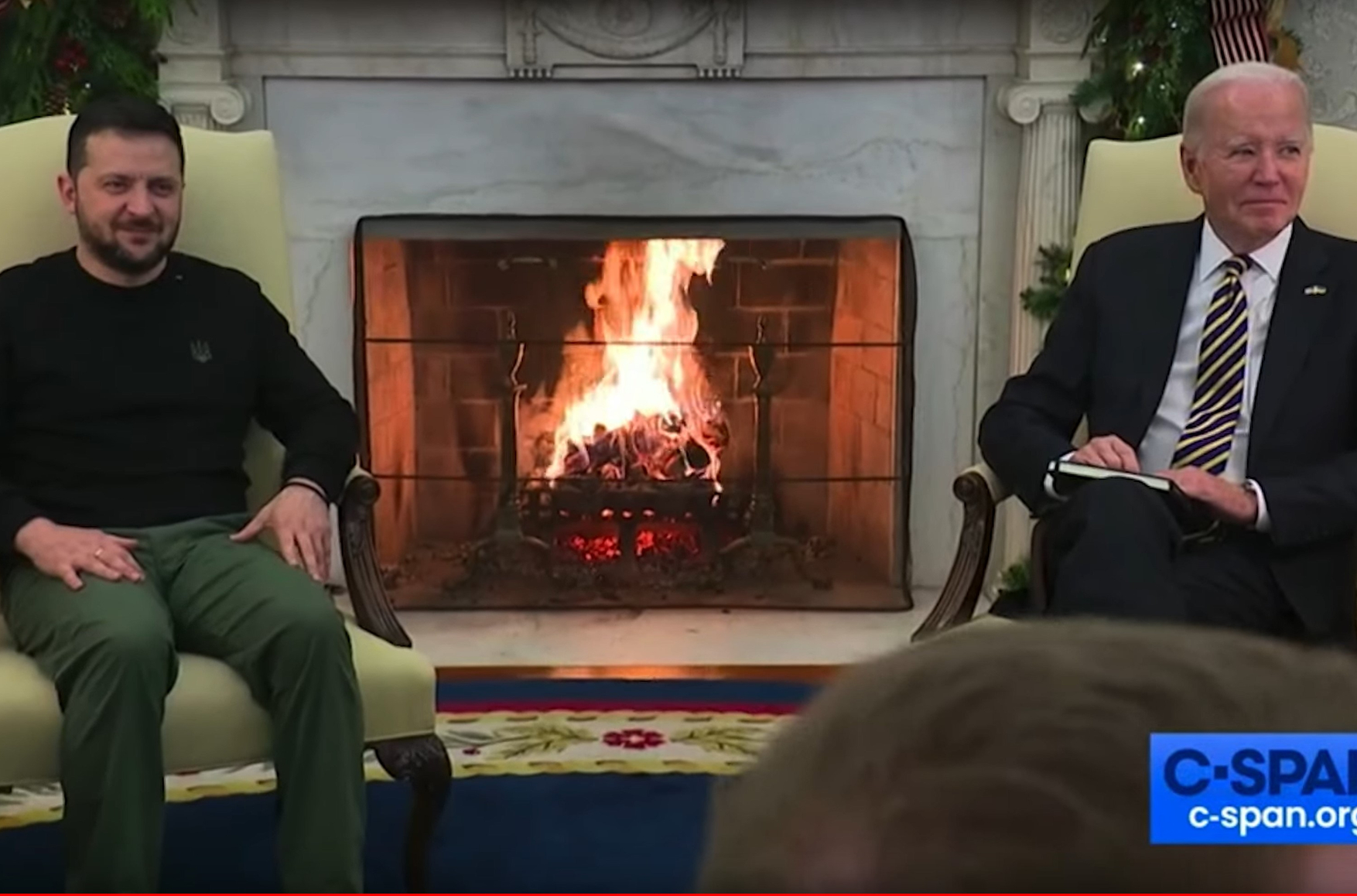 На самом деле никакого вопроса о том, желает ли Байден Украине победы, не было. Как явствует и из видео, опубликованного американской телесетью С-SPAN, и из текстовой расшифровки на сайте Белого дома, после приветствий двух президентов слышны голоса, что-то абсолютно неразборчиво говорящие одновременно за кадром. Байден останавливает их и говорит: