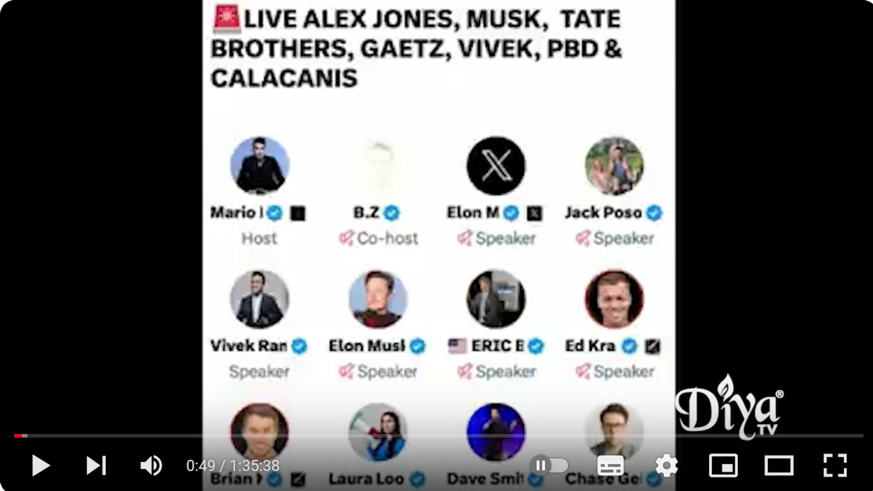 Фактчекеры 24 канала опознали видеокадр: это обложка, которой снабжена аудиозапись полуторачасового разговора с участием Маска, политиков-республиканцев Вивека Рамасвами и Мэтта Гетца, радиоведущего Алекса Джонса, бизнесменов Патрика Бет-Дэвида и Джейсона Калаканиса, а также блогера Эндрю Тейта, опубликованная в YouTube-канале американской телесети Diya TV, ориентированной на индийскую диаспору. В этой записи о России и Путине вообще не говорят.
