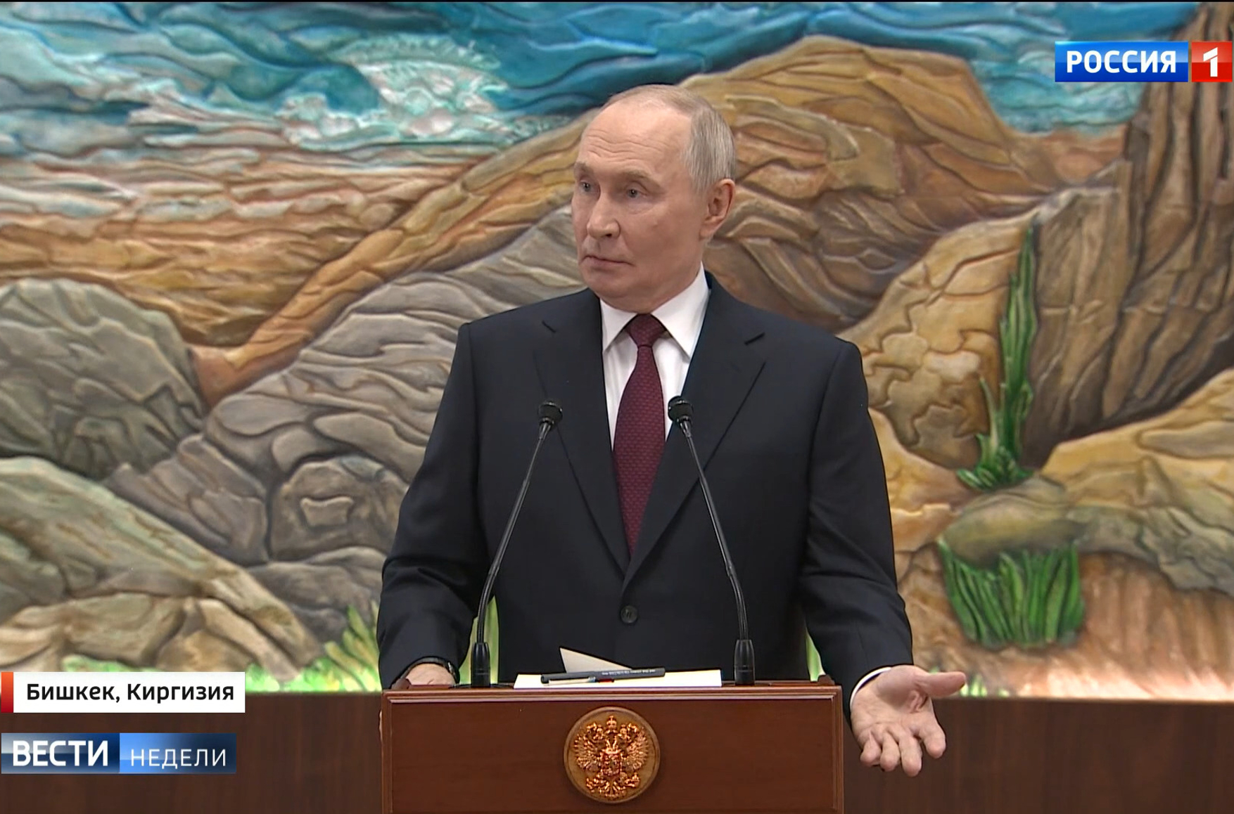 А вот оригинал — ответы Путина на вопросы российской прессы в Бишкеке 27 ноября: