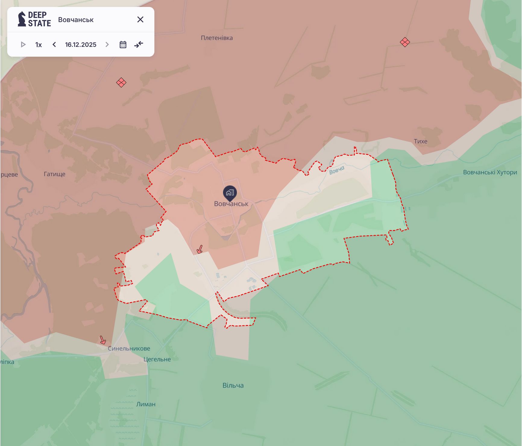2 декабря Минобороны отчиталось о взятии под контроль Волчанска в Чугуевском районе Харьковской области. Украина не подтверждает полный захват; по данным DeepState, южные и восточные окраины в зоне боев, а небольшая часть все еще контролируется ВСУ. Население Волчанска перед началом войны составляло 17459 человек.