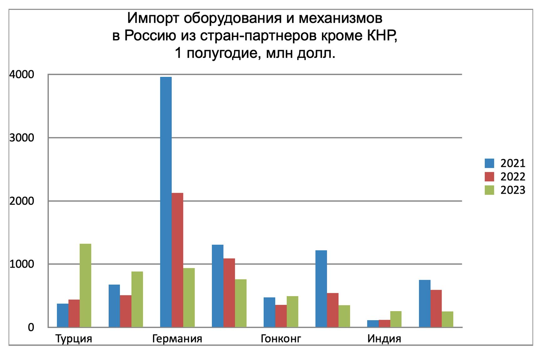Теперь посмотрим, откуда же приходят в Россию товары каждой из этих групп. Отечественная статистика об этом не говорит, но доступны зеркальные данные стран-партнеров.