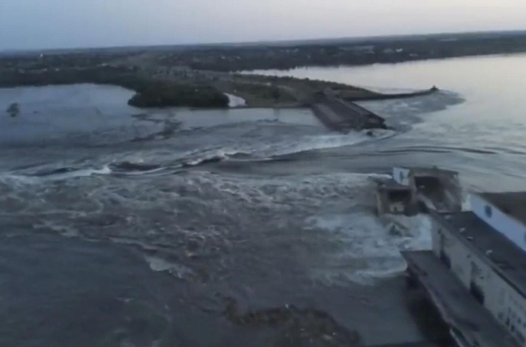 The dam went underwater a few hours after it broke, according to a video published on Telegram by pro-Russian military correspondent Yuri Kotenok: