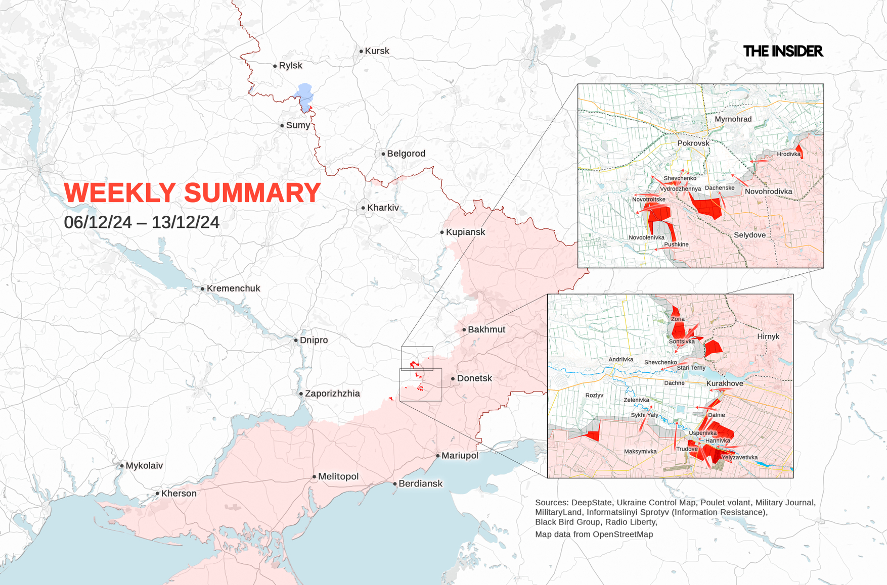This past week, the Russian Armed Forces seized 90 square kilometers of territory in Ukraine, according to DeepState data analyzed by the Russian independent media outlet Agentstvo. This is the slowest progress the Russian forces have made since late October. The indicator decreased for the second week in a row. Agentstvo's findings were confirmed by the estimates of Ukrainian OSINT channel Oko Gora, which asserts that the Russian forces captured 72 square kilometers from Dec. 2 to Dec. 8, 2024, progressing at a rate of 10 square kilometers a day.