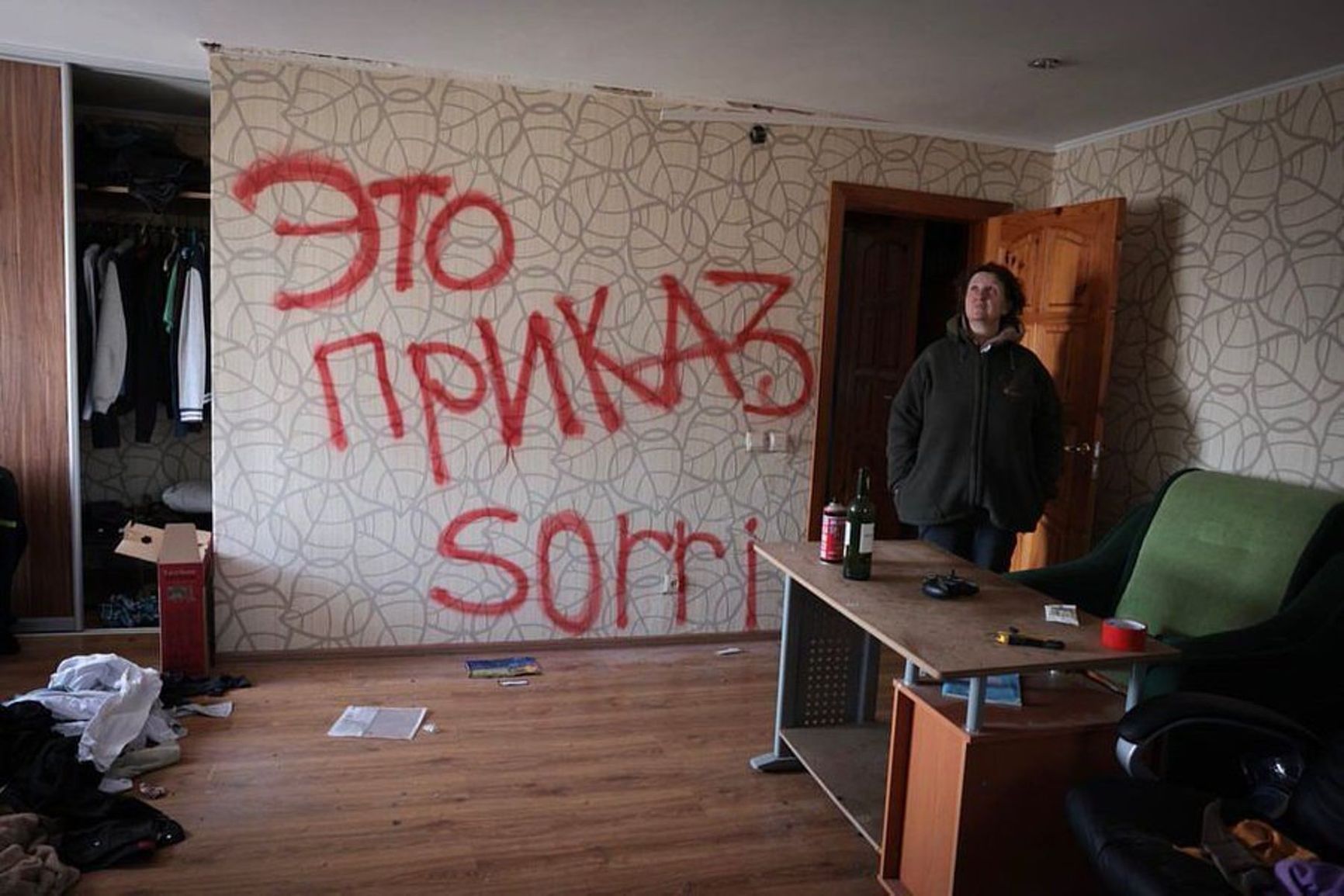 An inscription left in one of the apartments in Bucha