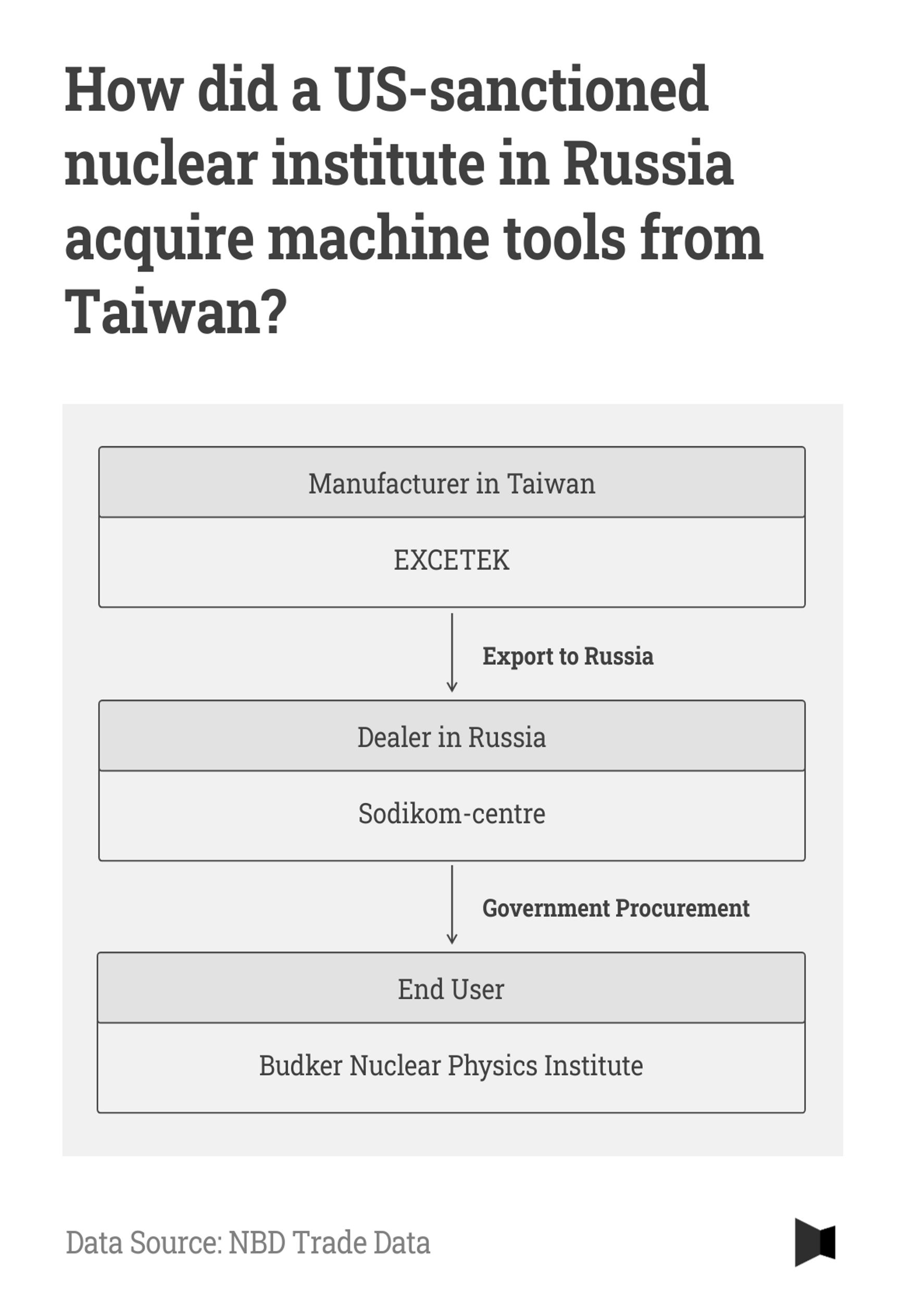 Another electrical discharge processing machine manufacturer in Taiwan, Excetek, was involved in a similar case. According to Russian public procurement data, the Budker Nuclear Physics Institute — also included in the sanctions list compiled by the U.S. Department of the Treasury — purchased Excetek’s “NP600L” and “VG500” from the importer Sodikom-Tsentr in June 2023.