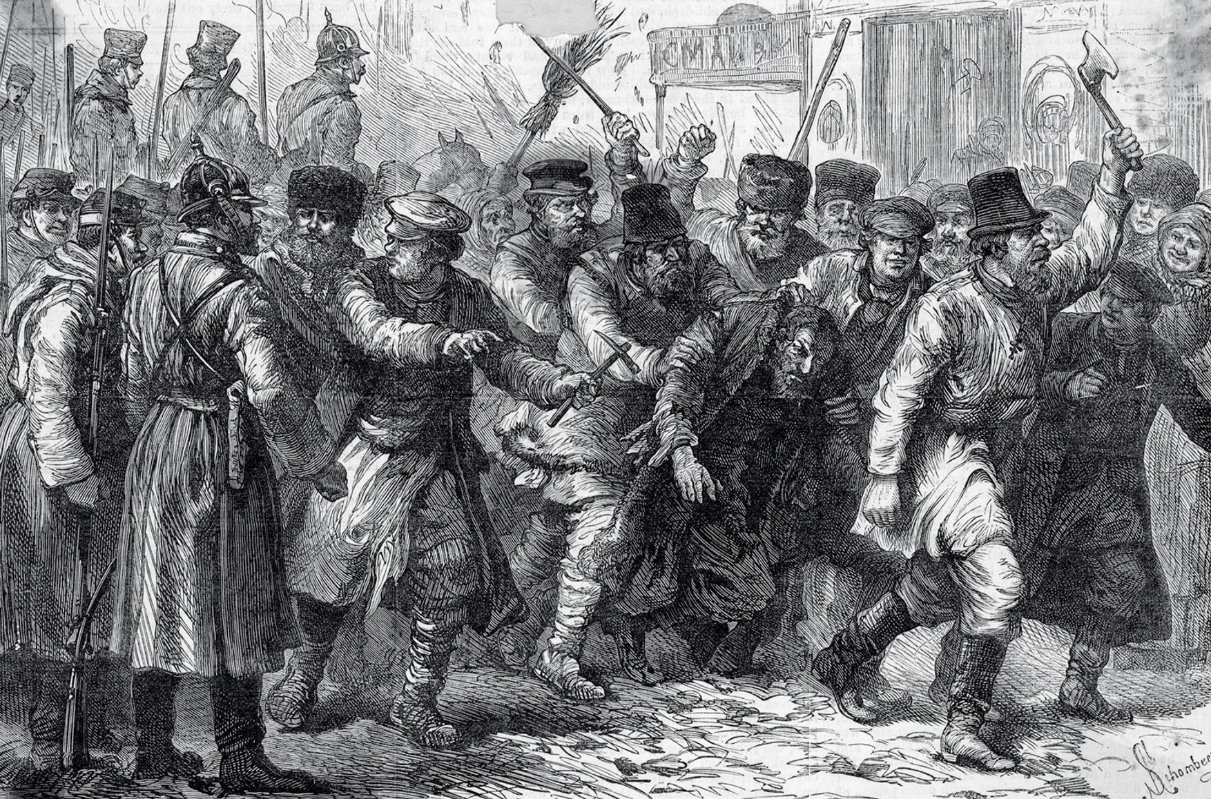 «Погром» — одно из немногих слов, которые европейские языки заимствовали из русского. В самой России в последние десятилетия оно, казалось бы, вышло из обихода и употреблялось только в связи с прошлым — но события в махачкалинском аэропорту снова сделали его актуальным. Юдофобия в Российской империи существовала во все времена, и история еврейских погромов насчитывает много кровавых глав. Практически всегда официальные власти бездействовали, а в некоторых случаях даже побуждали погромщиков к грабежу и резне.