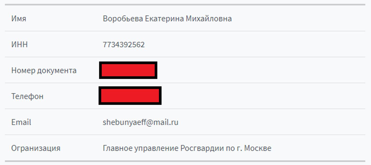 Дочери Михаила Воробьева досталось не только право на дорогой дом, но и цифровой пропуск в период действия карантинных ограничений. Екатерина передвигалась по столице от имени Главного управления Росгвардии по Москве. При этом в Росгвардии она не работает, поэтому выдачу пропуска можно рассматривать как злоупотребление должностным положением. Судя по всему, оформлением пропуска занимался заместитель генерала, полковник Дмитрий Щебуняев — именно адрес его личной электронной почты указан в документе.