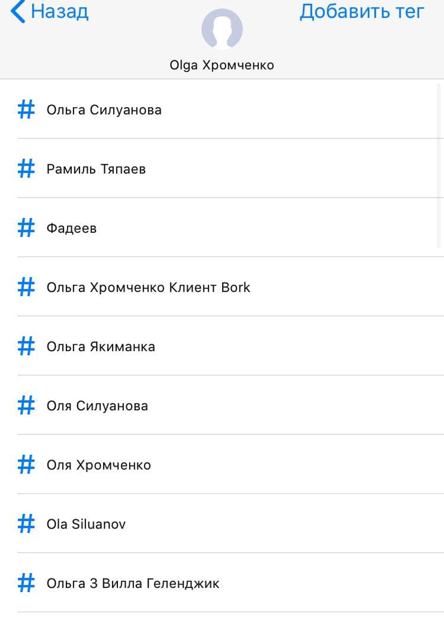В контактах некоторых своих знакомых Хромченко записана как Силуанова, а в двух случаях и как его супруга (официально Силуанов холост с 2015 года). Еще встречаются метки «вилла Геленджик», «Майами», «лоббистка» и «Сейшелы».