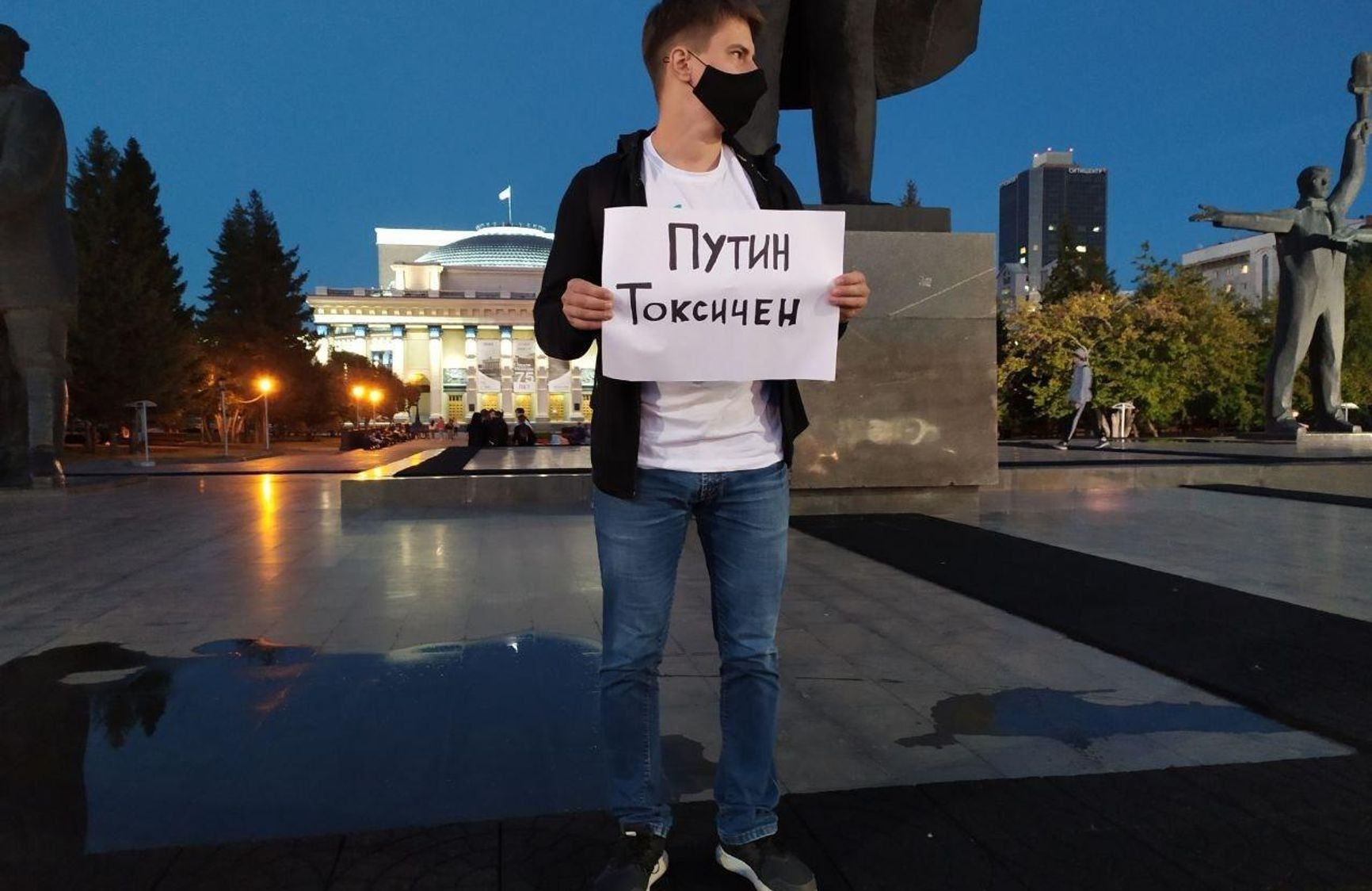 В Новосибирске на площади Ленина около 40 человек выстроились в пикетную очередь. Активисты держали в руках плакаты «Путин токсичен», «Путин боится Навального», а также «Навального отравили!» и «Яд — оружие трусов».