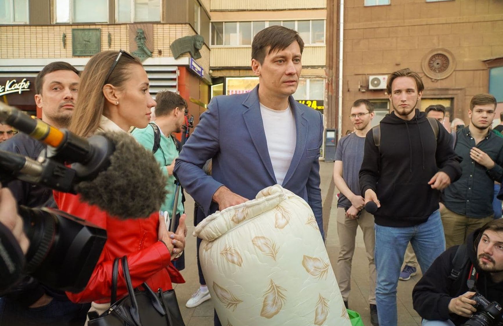 Дмитрий Гудков после освобождения из изолятора временного содержания на Петровке 38 пообщался с журналистами. Импровизированную пресс-конференцию он устроил напротив ресторана «Макдональдс» на Пушкинской площади, куда его отвезли полицейские и высадили буквально на дороге. Он рассказал, как провел последние 48 часов, и высказал предположения о том, с чем было связано его задержание.