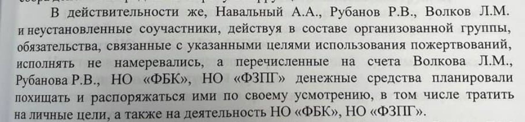«Никаких доказательств в виде конкретных счетов, транзакций или других финансовых следов следствие не предоставило», — пишут соратники Навального. Постановление о привлечении Навального в качестве обвиняемого можно прочитать здесь (в частности, из них следует, что перечисленные на счет ФБК средства «преступная группа» намеревалась тратить на деятельность ФБК):