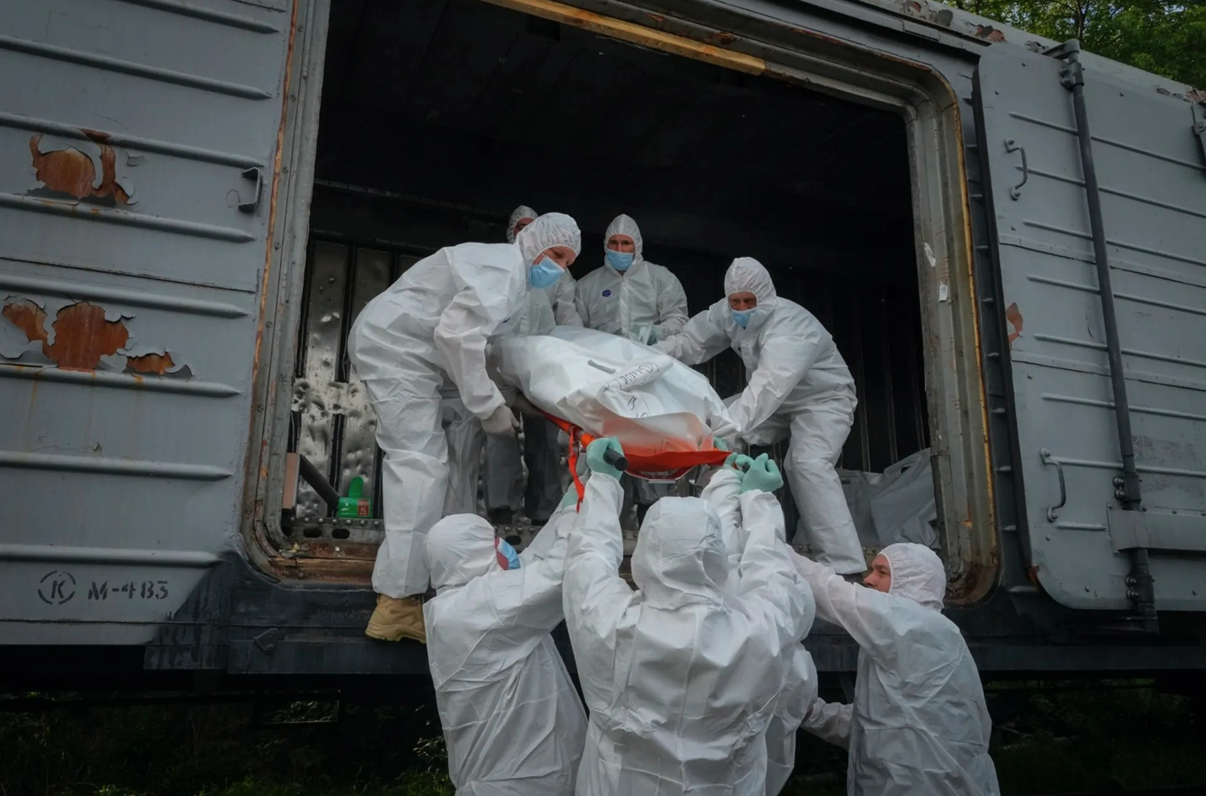 Впервые о вагонах-рефрижераторах с трупами российских военных стало известно из репортажа Al Jazeera от 9 мая. Телеканал показал видео, снятое в Киевской области, на котором видны тела в форме, похожей на российскую. На то, что это тела российских военных, указывают и найденные у них шевроны российских войск. По состоянию на 14 мая, по данным Reuters, в вагонах находились сотни тел погибших в Украине российских военных.
