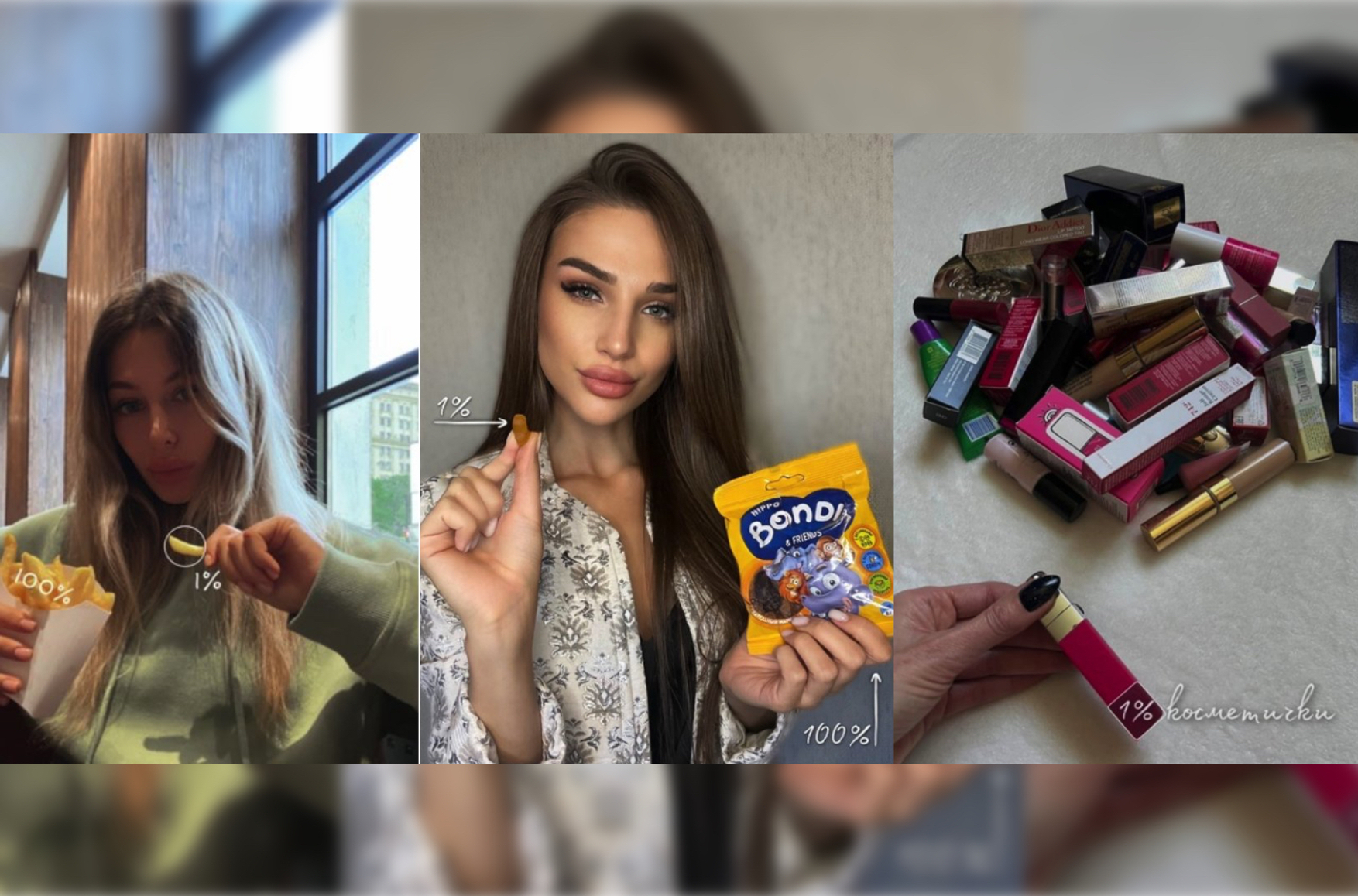 В одном из постов девушка предлагает посмотреть, как же мал 1% большой женской косметички. Поэтому, говорится в посте, паниковать не надо, ведь «наша паника — цель врагов», а заниматься российские военные будут всего лишь «контролем уже освобожденных территорий».