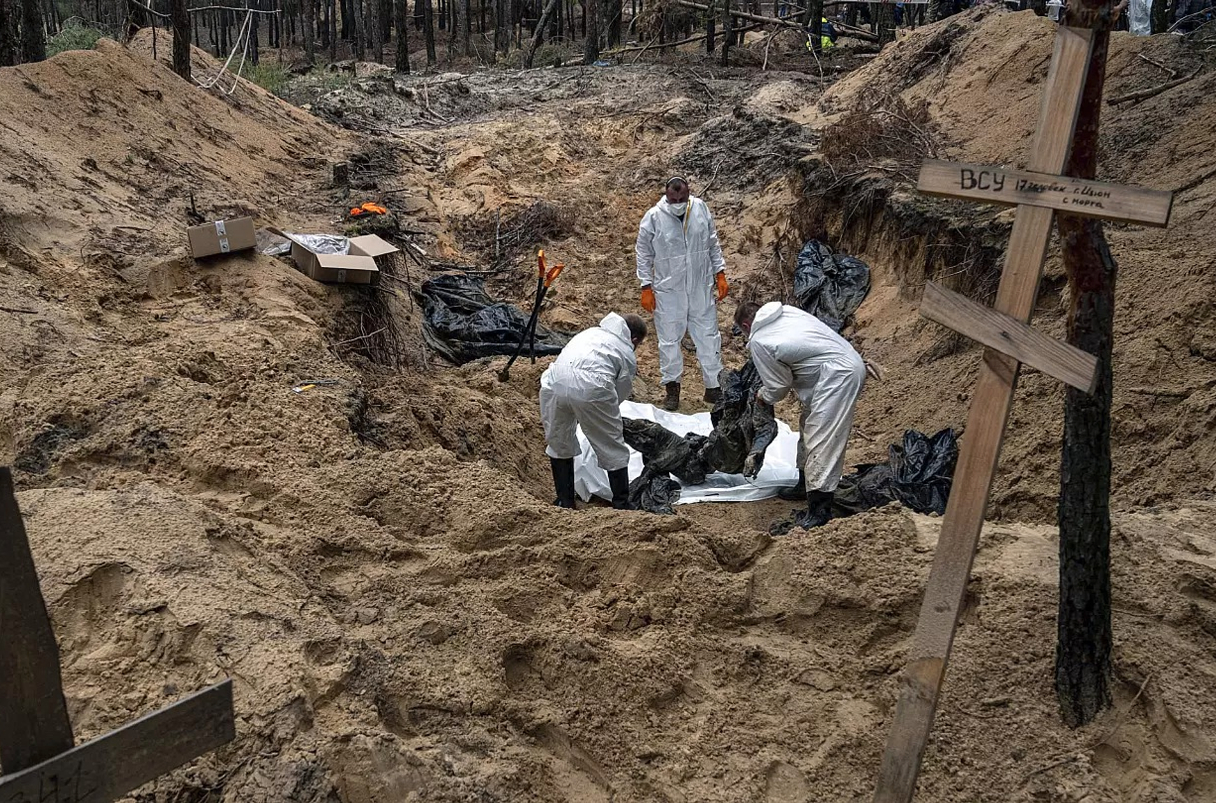 Он подчеркнул, что почти 450 трупов было найдено в Изюме. После освобождения от российской оккупации там было обнаружено одно из самых массовых захоронений. Среди погибших, заявил Котенко, не только военные, но и гражданские, в том числе дети.