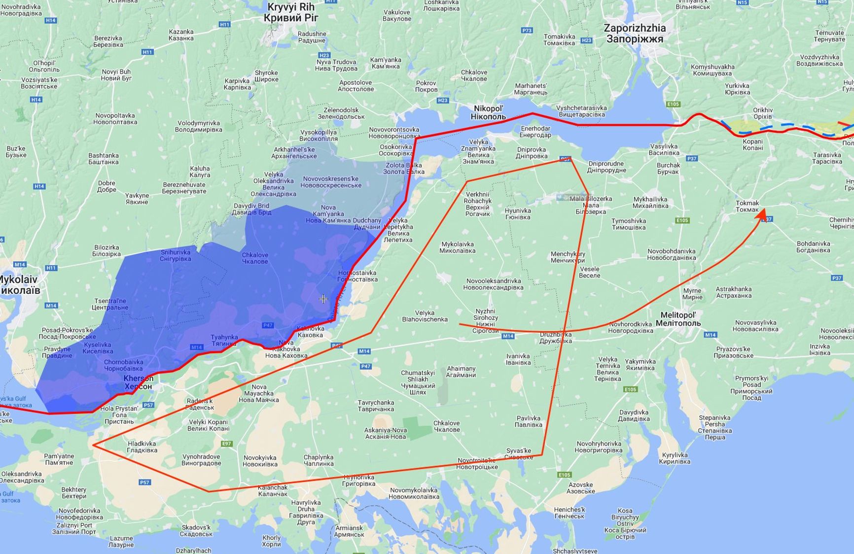 Как считают военные эксперты американского Института изучения войны (ISW), российские силы в Херсонской области «частично уязвимы» и могут оказаться изолированными. У военных ограниченное количество автомобильных и железных дорог в этом районе, по которым может идти снабжение группировки. Украинская армия уже обстреливает скопления войск и техники на дорогах.