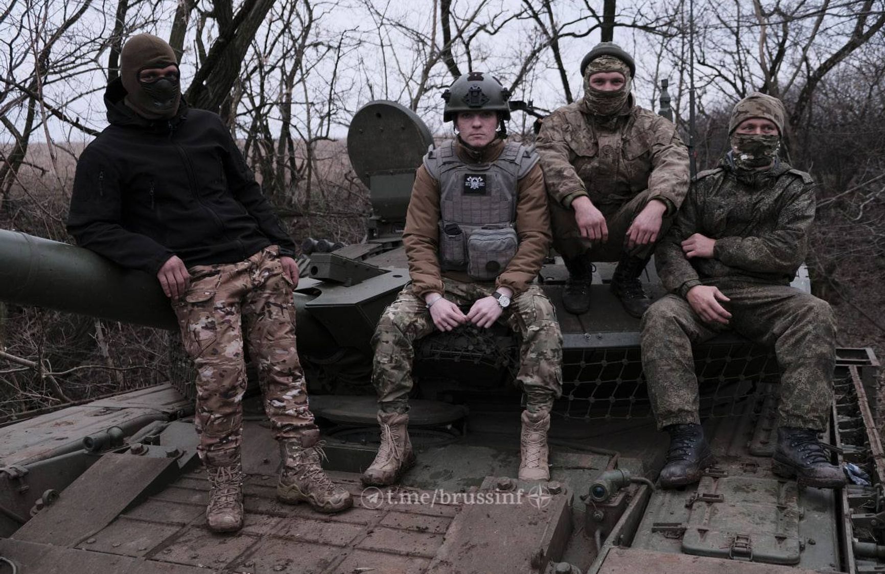 Пророссийский военкор, автор Telegram-канала «Брюссельский связной» опубликовал фотографию танкового экипажа группы ЧВК Вагнера, работающего на новейшем Т-90М «Прорыв».