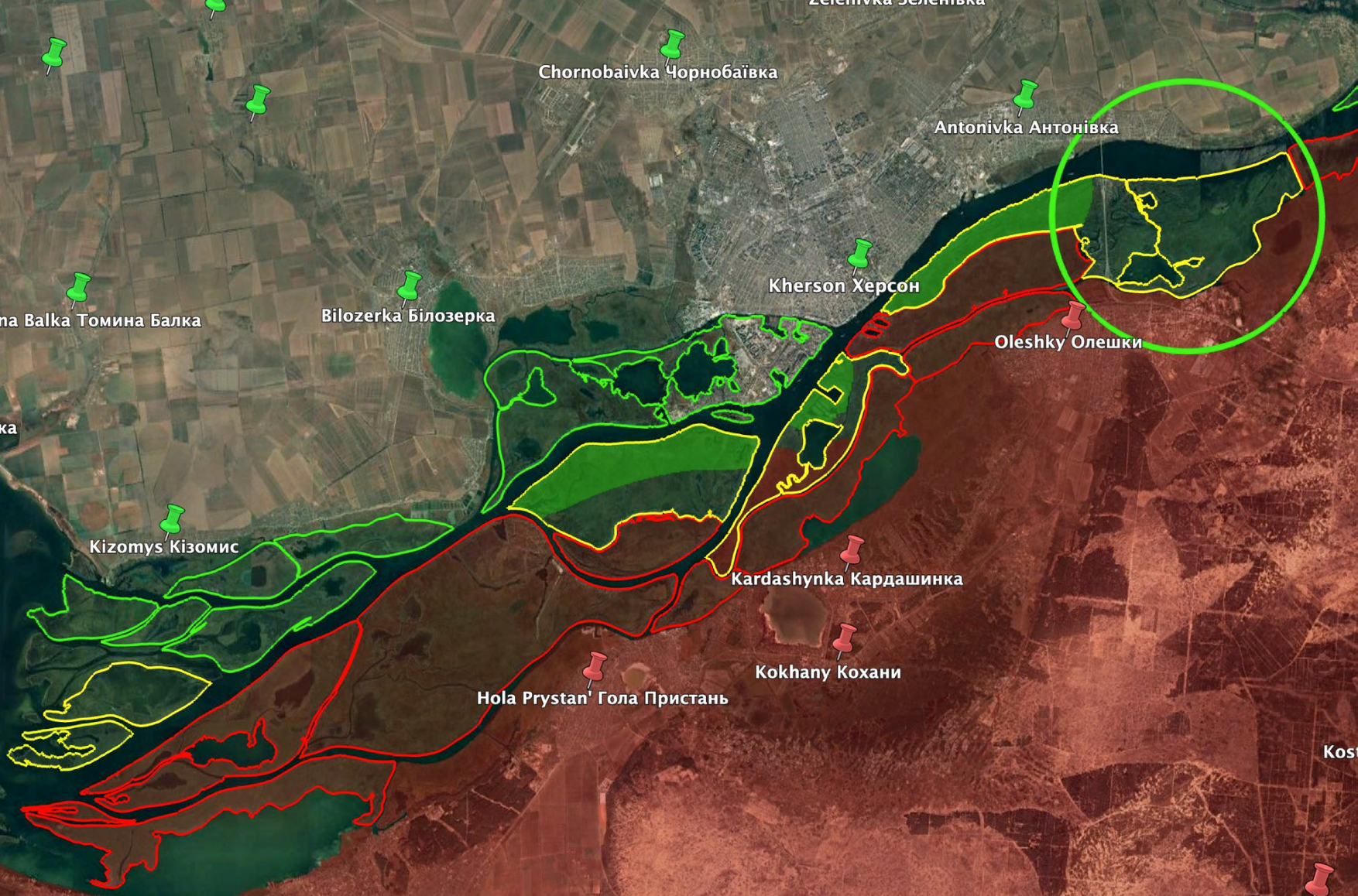 Украинские силы укрепляют свои позиции в дельте Днепра. Проект Ukraine Battle Map дает свою оценку ситуации на Херсонском направлении. Согласно опубликованной карте, ВСУ полностью или частично контролируют многие острова в дельте реки.