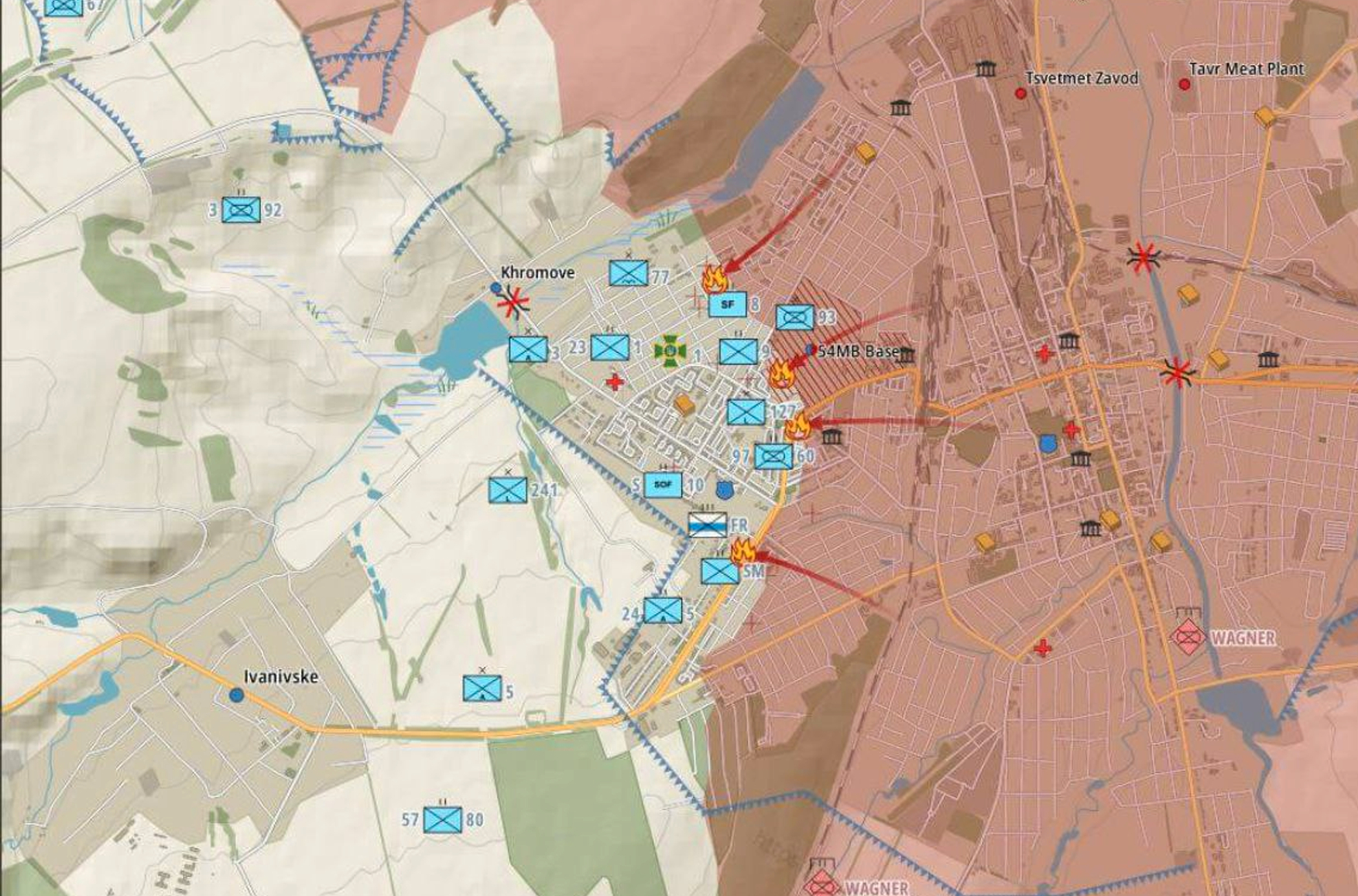 В центре внимания — Бахмут, но не в связи с динамикой боевых действий. Насколько можно судить, ситуация в городе уже несколько суток почти не меняется. Один из основателей и главное публичное лицо ЧВК Вагнера, бизнесмен Евгений Пригожин, записал открытое обращение, пригрозив, что бойцы-вагнеровцы оставят город и передадут его ВС РФ, если в кратчайшие сроки не будет решена проблема со снабжением боеприпасами. Срок «ультиматума» Пригожина — 10 мая.