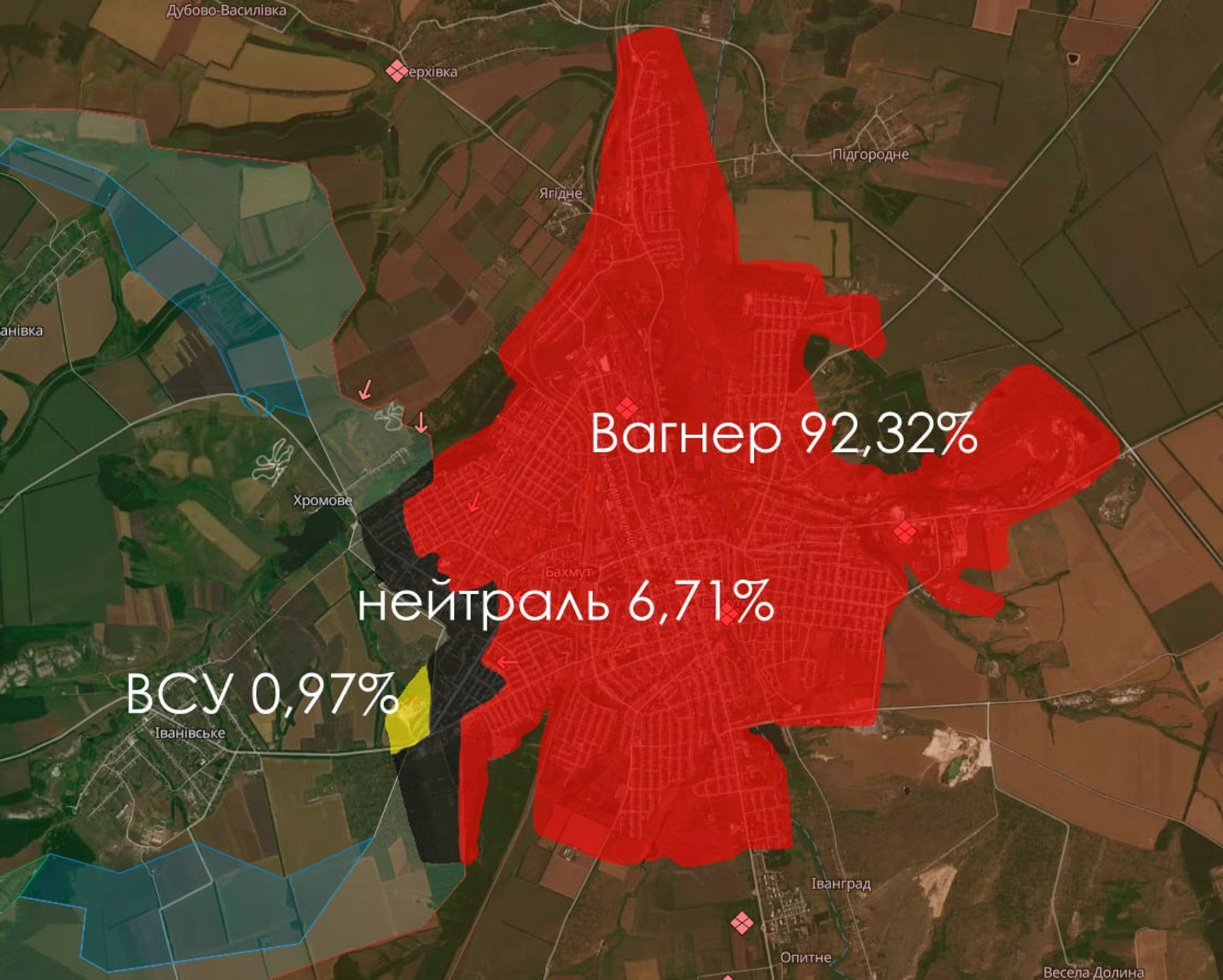 Уже достаточно давно от улицы Чайковского к улице Корсунского в кварталах создан буфер безопасности, такая серая зона, где постоянно продолжаются боевые действия городского характера. И еще важным является перекресток Юбилейной и Чайковского, за который ведутся ожесточенные бои. Сейчас «вагнера́» особенно пытаются продвигаться по улицам Полевой, Павла Новгородцева и 1-й и 2-й Лесной. Для них важен именно этот участок, потому что контроль над этим перекрестком открывает ворота к контролю над Чайковского и Юбилейной. На сегодняшний день ВСУ именно в Бахмуте находятся в таком треугольнике протяженностью почти 3,5 км, который и держат.