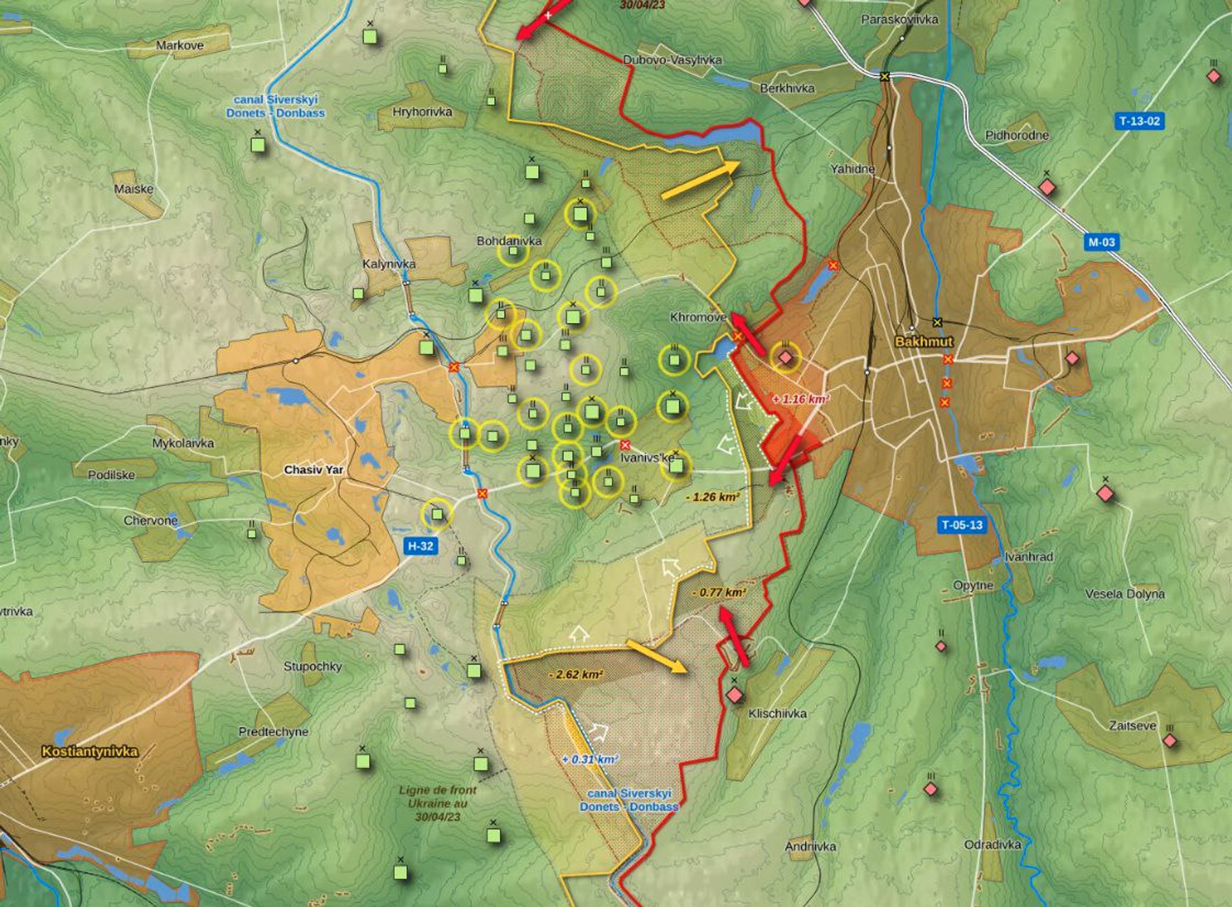 В Украине пока не подтверждают потерю Бахмута. Напротив, командующий Сухопутными войсками ВСУ Александр Сырский говорит о давлении на флангах и приближении к «тактическому окружению» города. Со своей стороны отметим, что пока до этого очень далеко — впрочем, может иметься в виду занятие господствующих высот вокруг города, о котором не так давно говорил Пригожин.