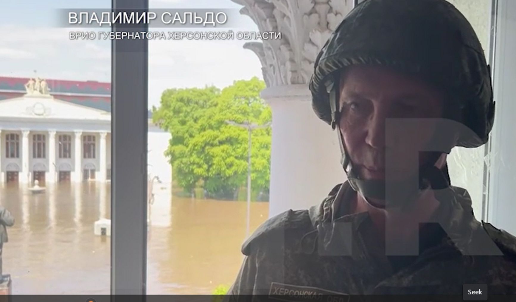 Глава оккупационной администрации Херсонской области Владимир Сальдо заявил, что серьезной опасности для региона нет и массовая эвакуация не требуется. В то же время ТАСС сообщало о начале эвакуации из населенных пунктов Новокаховского городского округа. «Известия» опубликовали видео, на котором Сальдо рассказывает, что в Новой Каховке жизнь идет своим чередом и люди «спокойно двигаются по улицам». При этом в окно, у которого стоит чиновник, можно увидеть городской дворец культуры, первый этаж которого затоплен, как и площадь перед зданием.