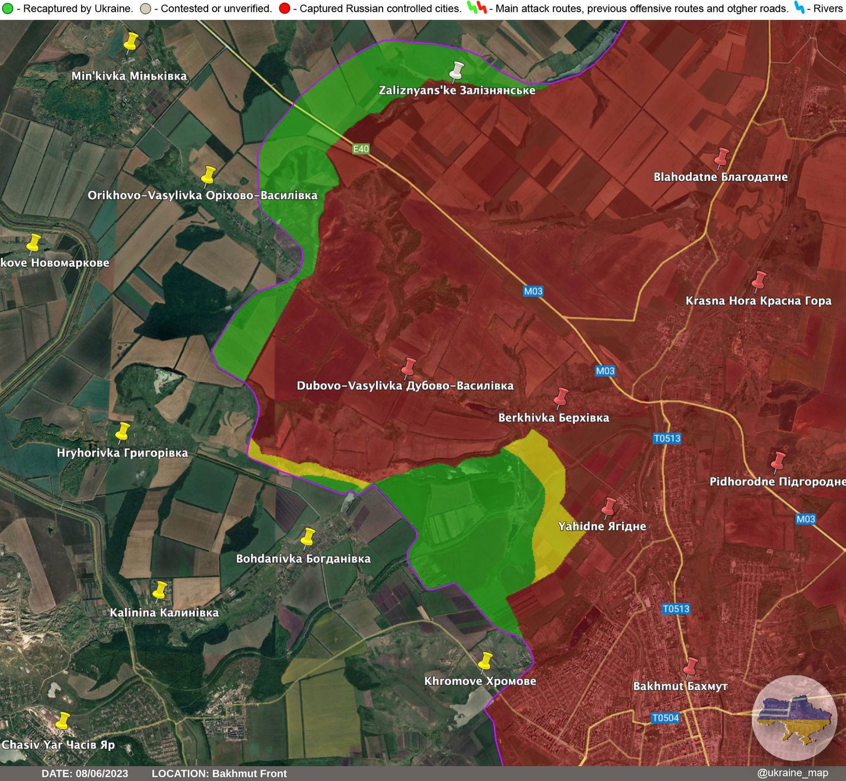 Ситуация на северном фланге Бахмута, по версии Ukraine Battle Map, выглядит следующим образом: