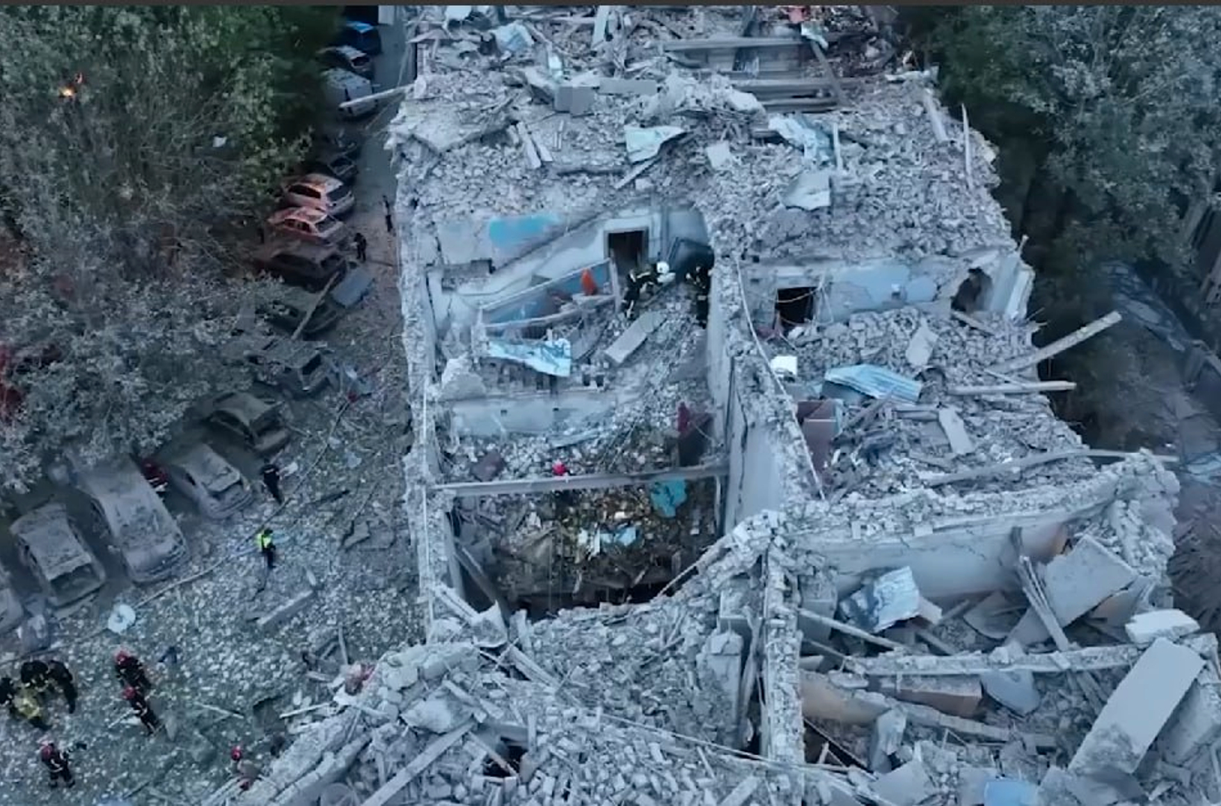 Клименко пишет, что ракета попала в многоквартирный жилой дом, разрушив третий и четвертый этажи в двух подъездах. Спасатели продолжают поиск людей, которые могут оставаться под завалами.