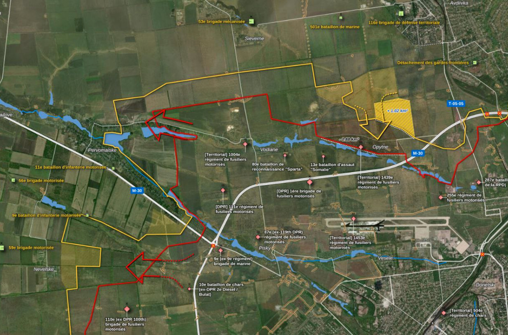 Украинский OSINT-проект DeepState сообщает об успехе ВСУ в районе Опытного, находящегося в пригороде Донецка. Российские военные утверждают, что ВСУ были выбиты из населенного пункта, а до этого вошли туда, «воспользовавшись расслабоном мобиков». Тем не менее, «говорят, что парочка их <украинских военных — The Insider> еще шарится там».