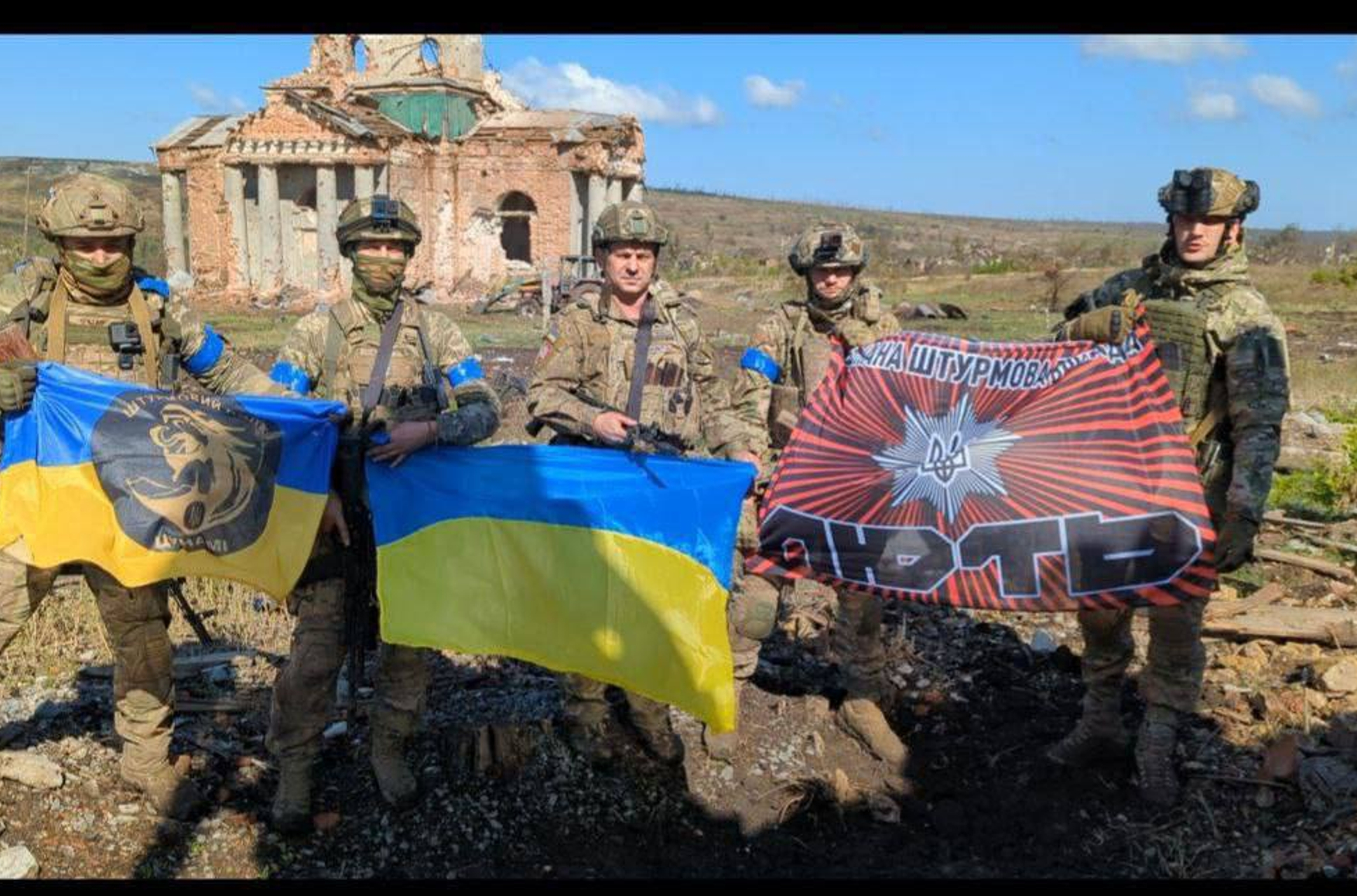 Глава Офиса президента Украины Андрей Ермак опубликовал фото бойцов бригады «Лють», которое, предположительно, было сделано в Клещеевке, с подписью «Украина всегда возвращает свое»