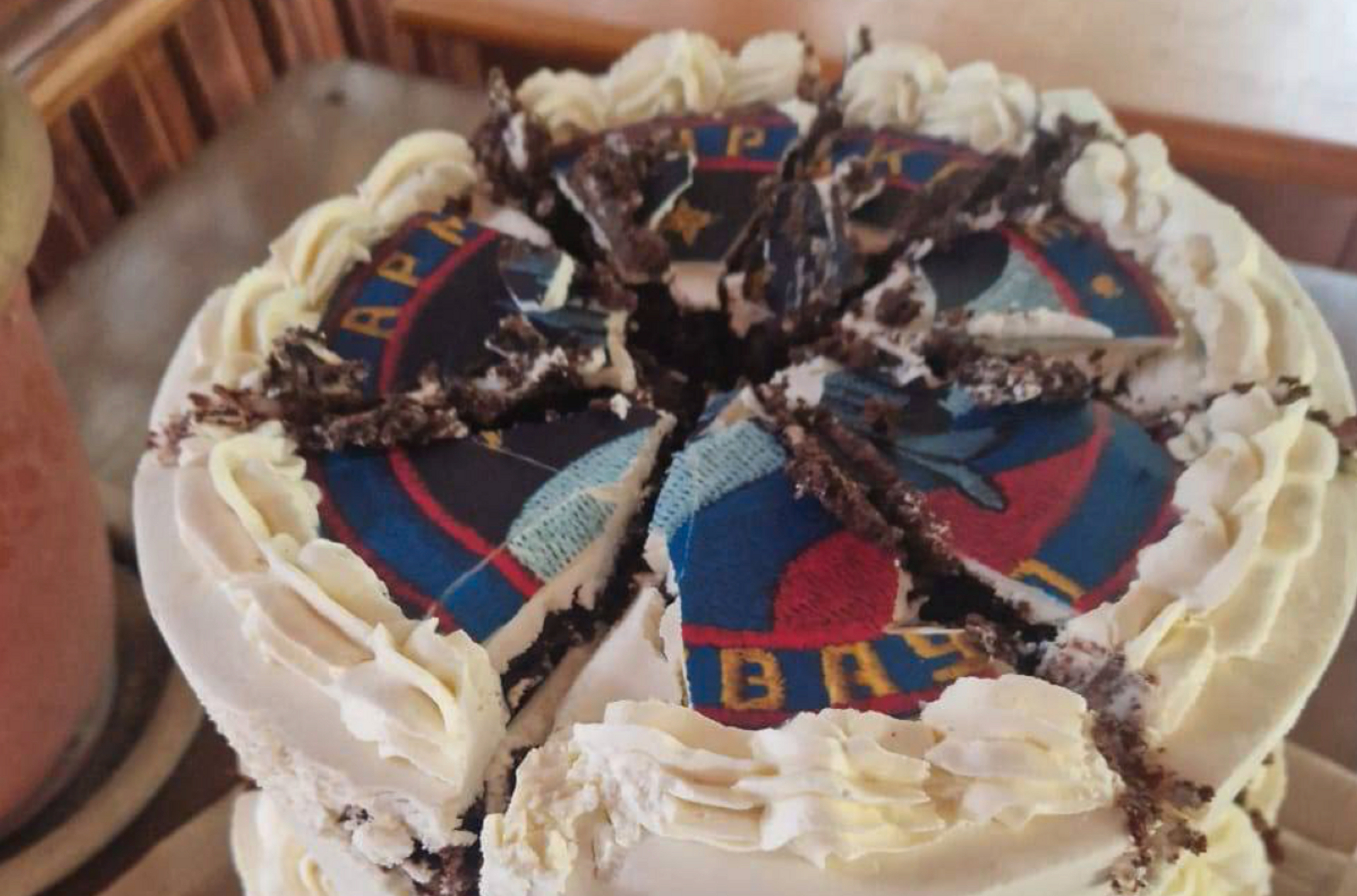 Baza подтверждает эту версию со слов участников празднования. Они говорят, что торт и бутылки были доставлены рано утром, когда выпускники училища еще не приехали.