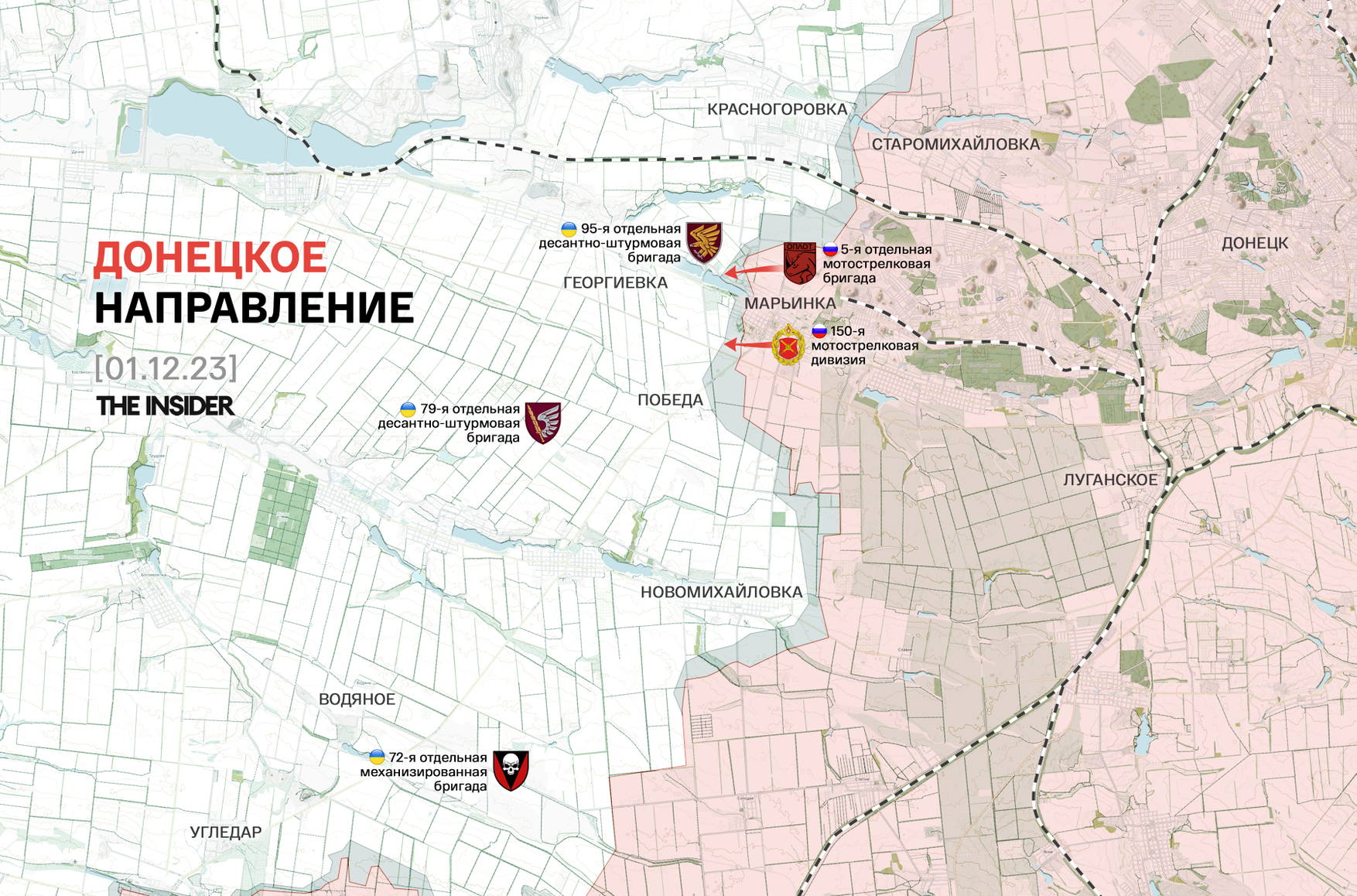 Российские лоялистские Telegram-каналы утверждают, что ВС РФ окончательно захватили Марьинку рядом с Донецком. Поводом для этого послужило видео с флагом России, водруженным над домом на Комсомольской улице на самой западной окраине города.