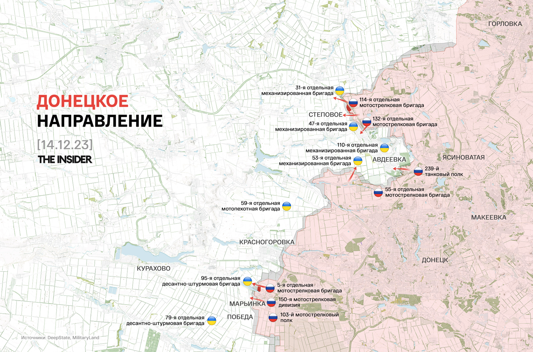 - DeepState — 92% площади Марьинки занято российскими силами, но бои за город продолжаются;
