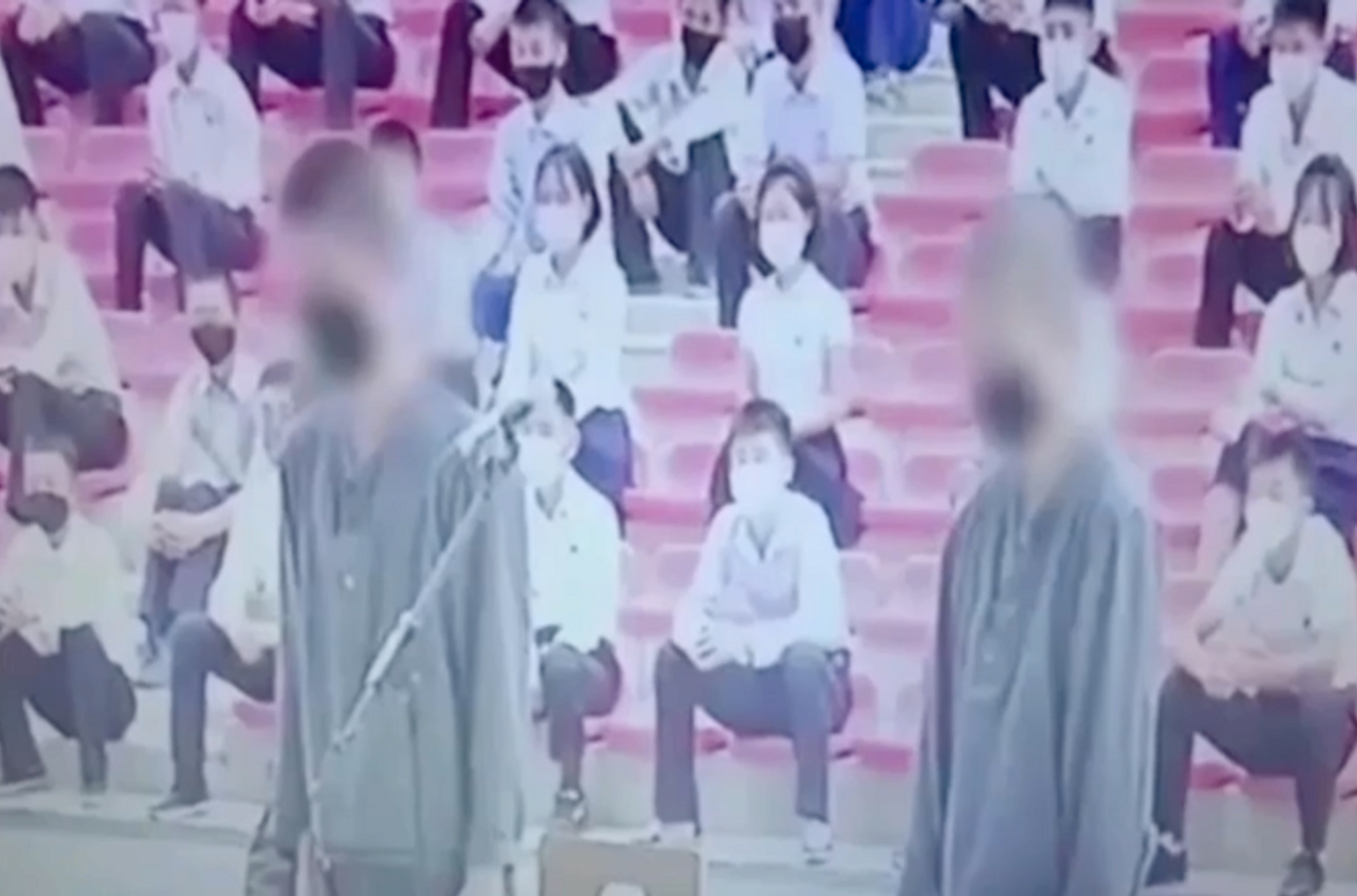 Предположительно, видео было снято в 2022 году. На нем демонстрируются два подростка, которые стоят в наручниках перед аудиторией, состоящей из нескольких сот старшеклассников, собравшихся на стадионе под открытым небом. Люди в военной форме бранят мальчиков за то, что они «недостаточно осознали свои ошибки».