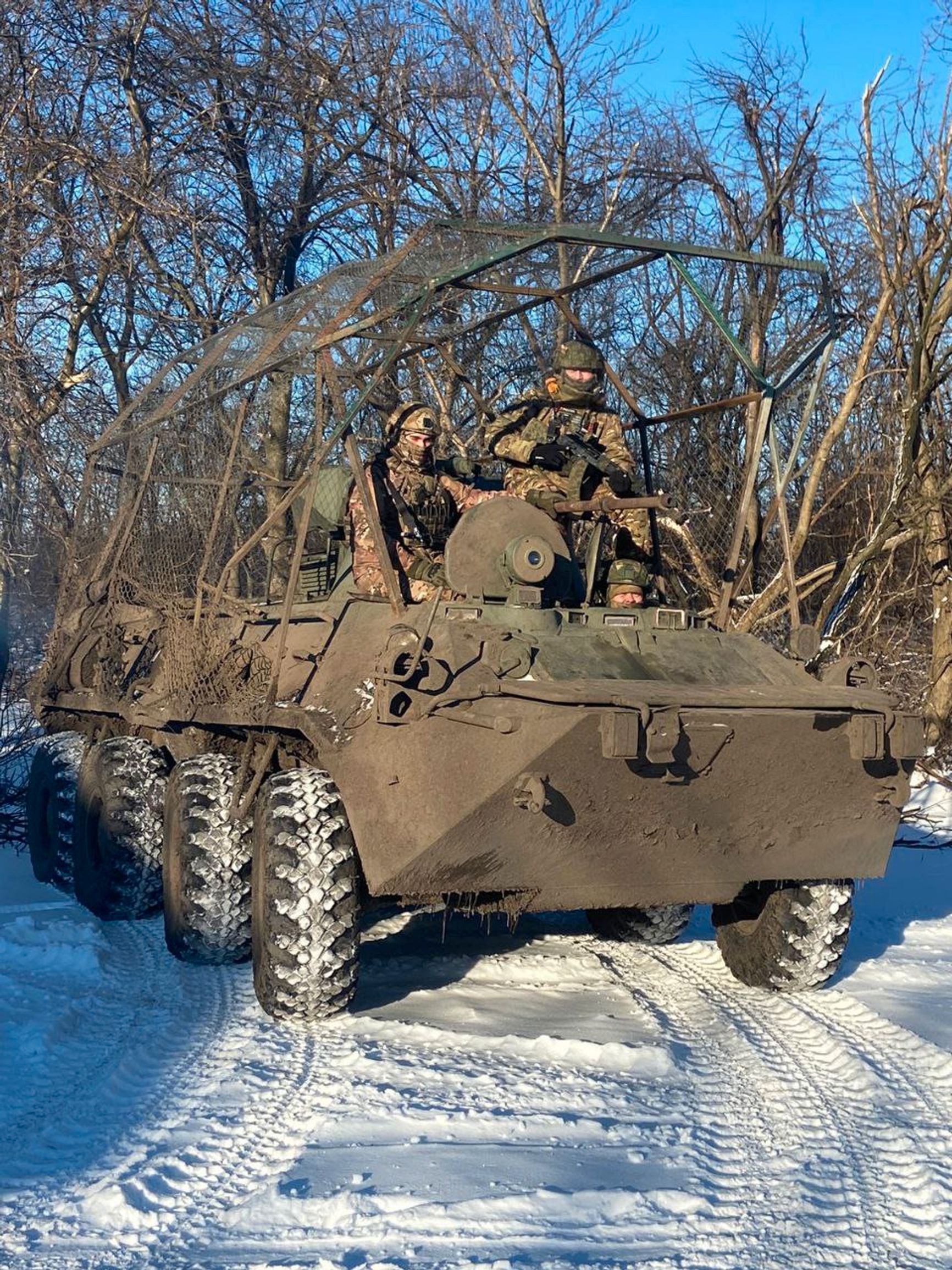 Россияне демонстрируют шедевры «мангалостроения» — опубликованы кадры с бронетранспортером БТР-82А и танками Т-72Б3М с внушительными противодроновыми конструкциями.