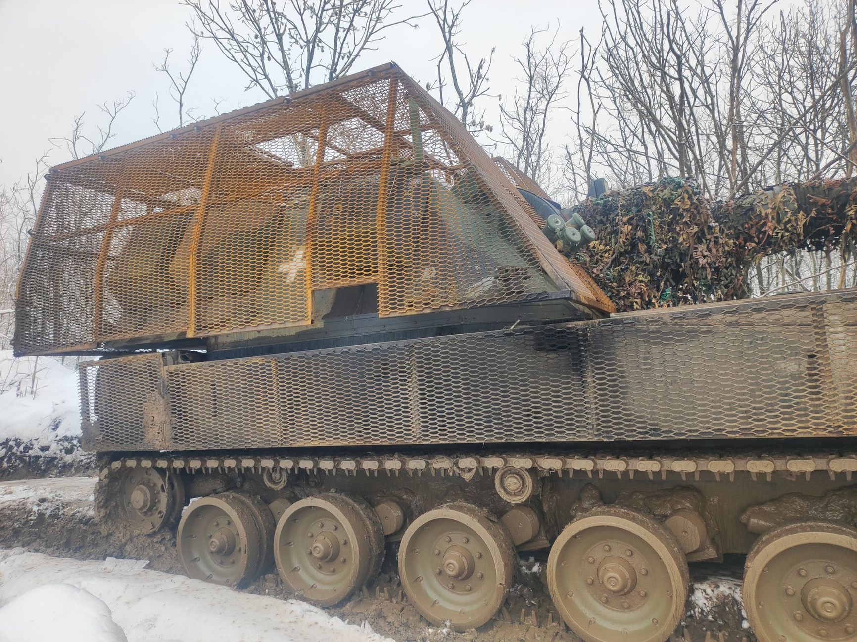 Тем временем украинские военные хвалят «мангал», поставленный волонтерами на польскую САУ Krab. По их словам, которые приводит пользователь Х под ником Exen, защита выдержала три попадания «Ланцетов».