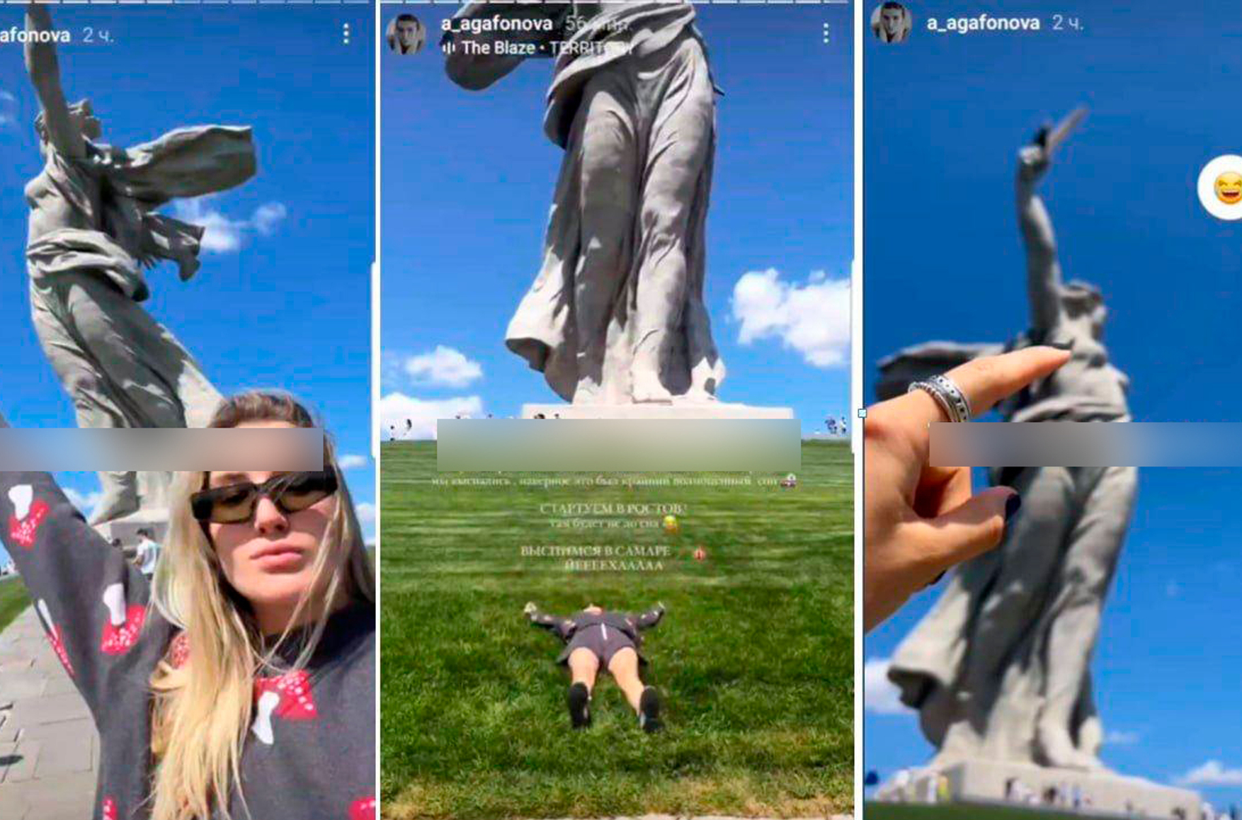 Агафонова позже опубликовала на своей странице в Instagram пост с извинениями и дала интервью Газете.Ru. Она рассказала, что «ни в коем случае не хотела надругаться» над памятником или «посмеяться над историей страны» и жертвами войны. Несмотря на публичные извинения, в УМВД России по Волгограду подчеркнули, что дело прекращать не собираются.