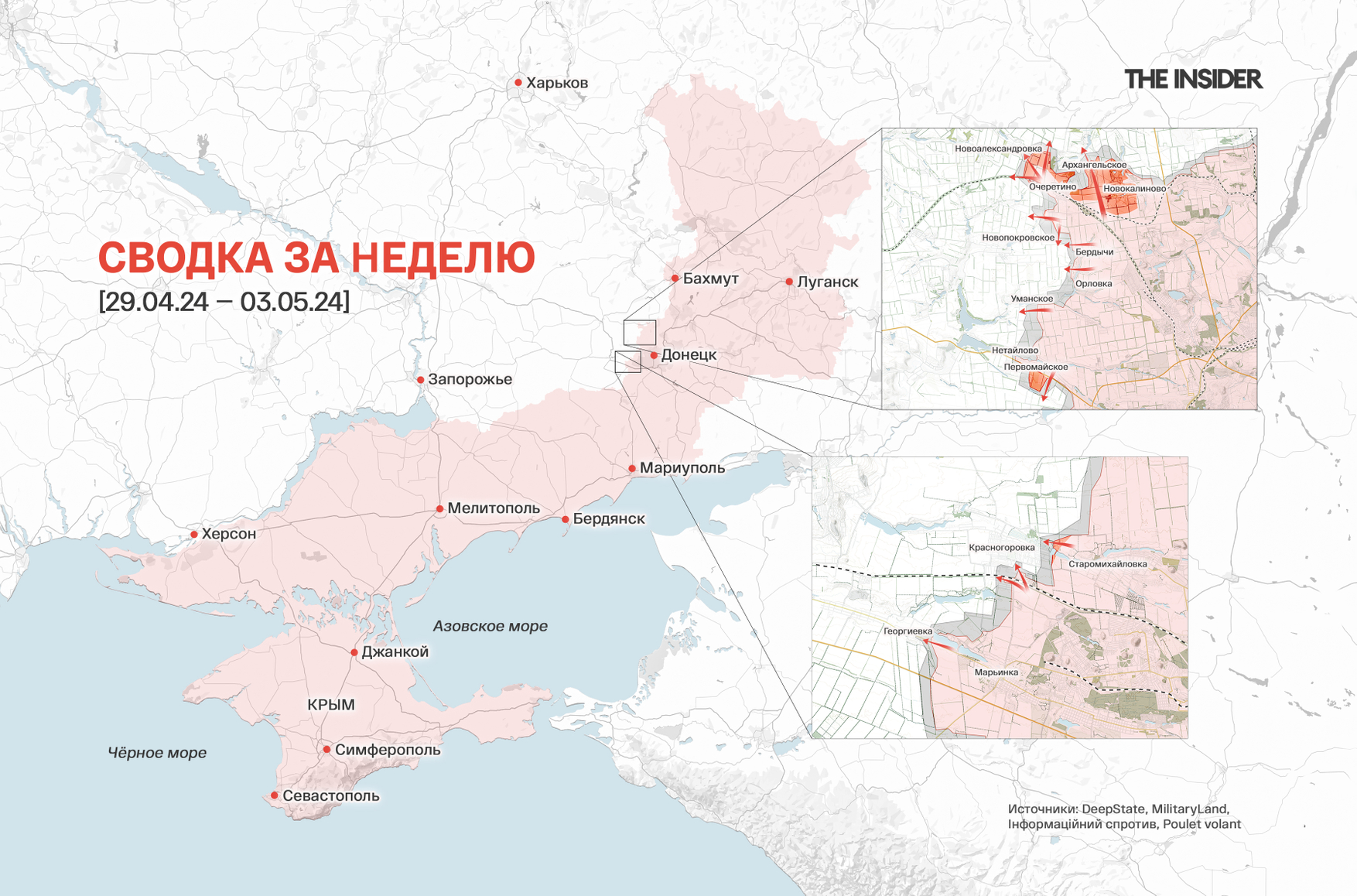 Предыдущая недельная сводка (с 22 апреля по 26 апреля 2024 года): ВС РФ преодолели украинскую оборону в районе Очеретино, крупнейший пакет военной помощи от США. Что происходило на фронте на этой неделе