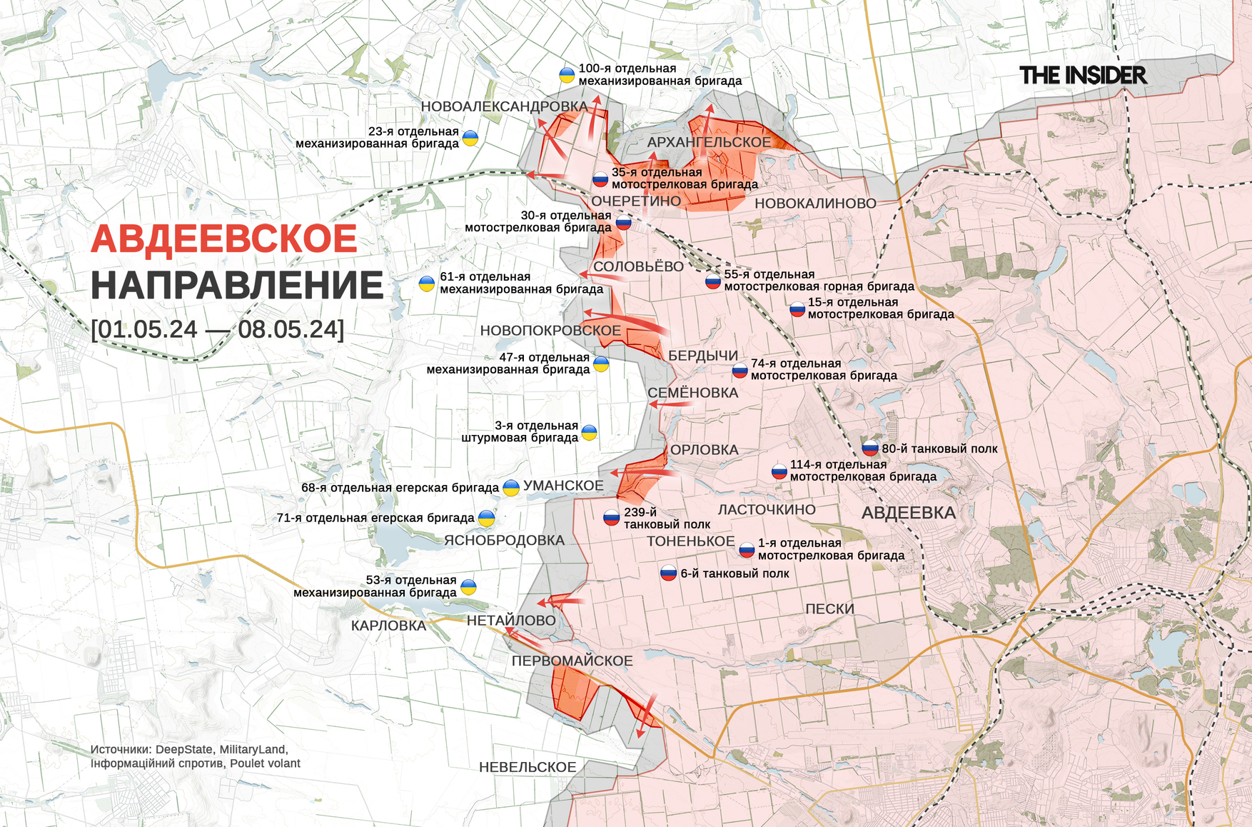 Помимо этого, Котенок пишет, что ВС РФ вышли к Старомайорскому на Времевском выступе. Однако он призывает другие Z-каналы не спешить с публикациями о закреплении в селе, поскольку пока удалось только «подъесть» посадки в полях вокруг него. Впрочем, полноценно штурмовать Старомайорское, по его оценке, будут уже «совсем скоро».