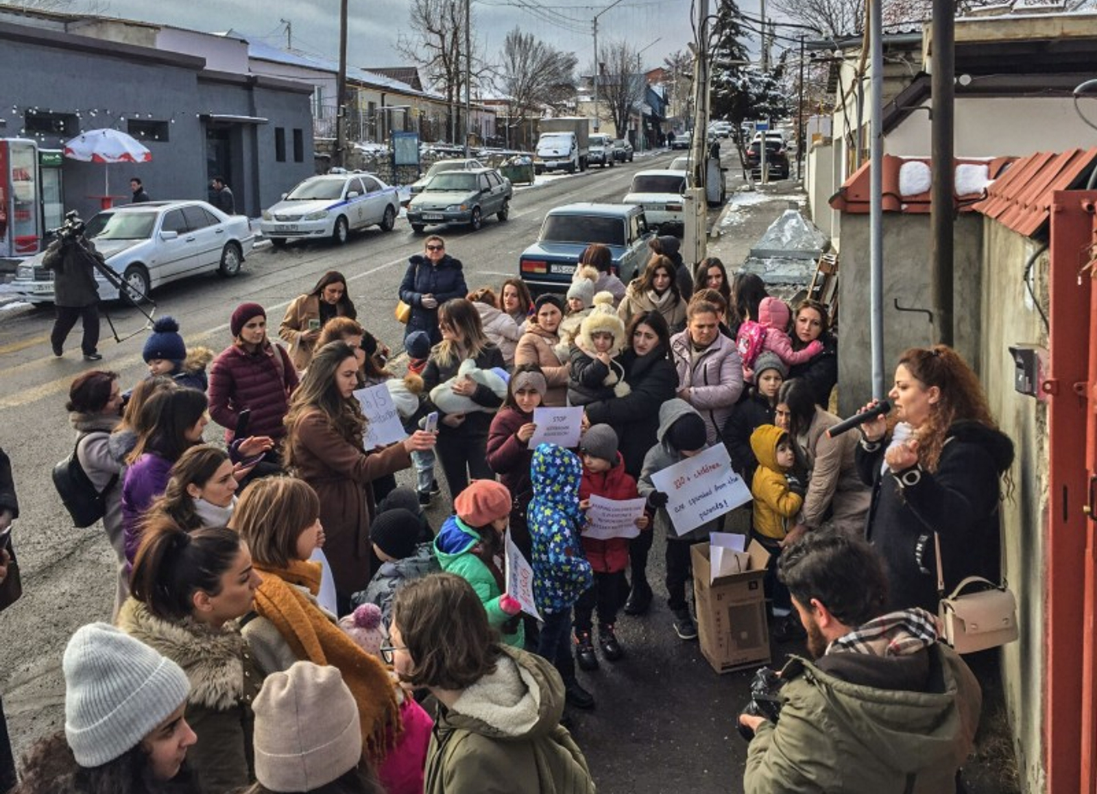 Протест у офиса МККК в Степанакерте во время блокады Нагорного Карабаха. Фото: Марут Ванян/OCCRP