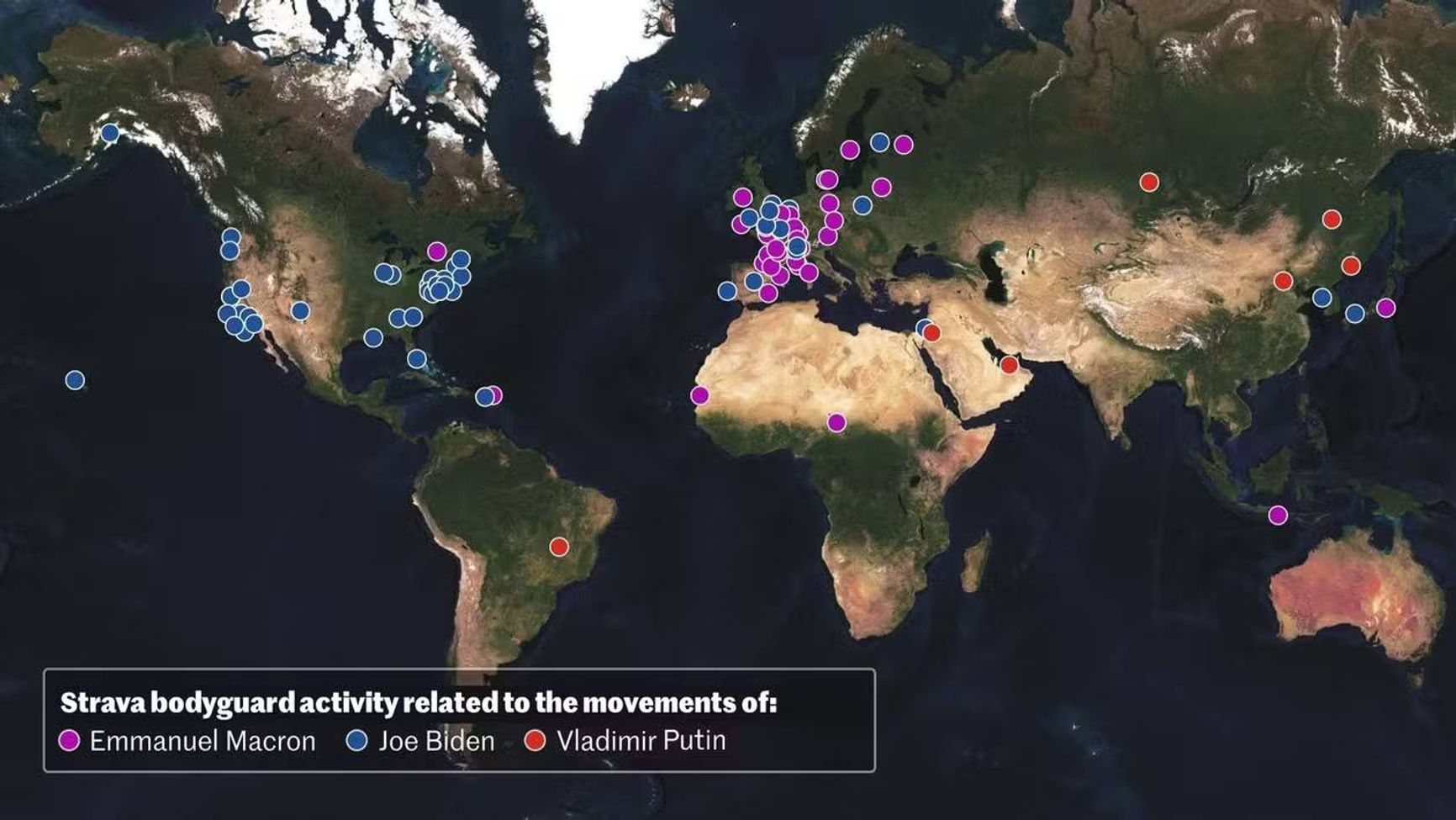Журналисты газеты Le Monde смогли отследить передвижения мировых лидеров с помощью приложения для фитнеса Strava, которое используют телохранители политиков. Среди фигурантов расследования Владимир Путин, Джо Байден, Эммануэль Макрон и другие.