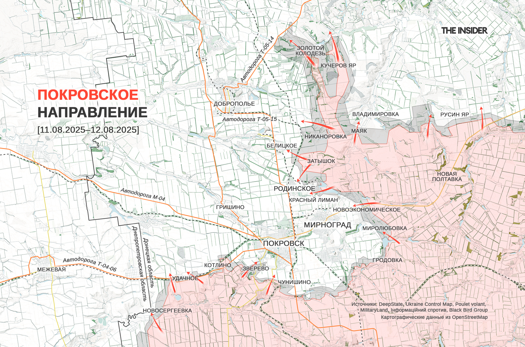 «Военкор» Юрий Котенок сообщает, что ВС РФ ведут бои на восточных подступах к Доброполью и перерезали автодорогу Доброполье — Покровск (до 2016 года — Красноармейск) на участке между Белицким и Родинским. Он утверждает, что оставшиеся логистические маршруты для агломерации Покровска и Мирнограда (до 2016 года — Димитров) находятся под огневым контролем российских сил. «Военкор» также пишет о перерезании трассы Доброполье — Краматорск и атаках в направлении Гришина к северо-западу от Покровска. Позднее Котенок сообщил о заходе ВС РФ на северо-восток Мирнограда и в восточную часть Родинского, а также о занятии позиций в 600–700 м от дороги на Покровск через Гришино.