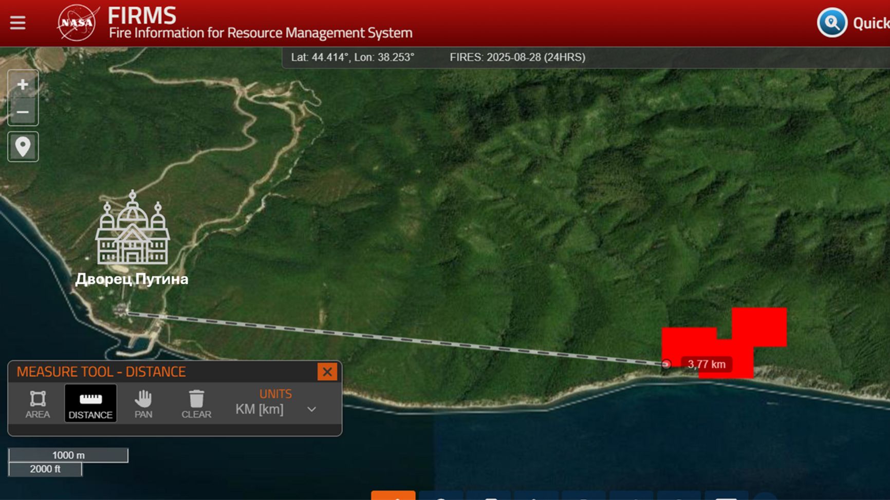 Как обратило внимание издание «Агентство», село Криница находится всего в 10 км по прямой от дворца Владимира Путина на мысе Идокопас. Позднее очаг возгорания более точно геолоцировали «Важные истории»: по данным издания, он может быть в 3-4 км от резиденции.