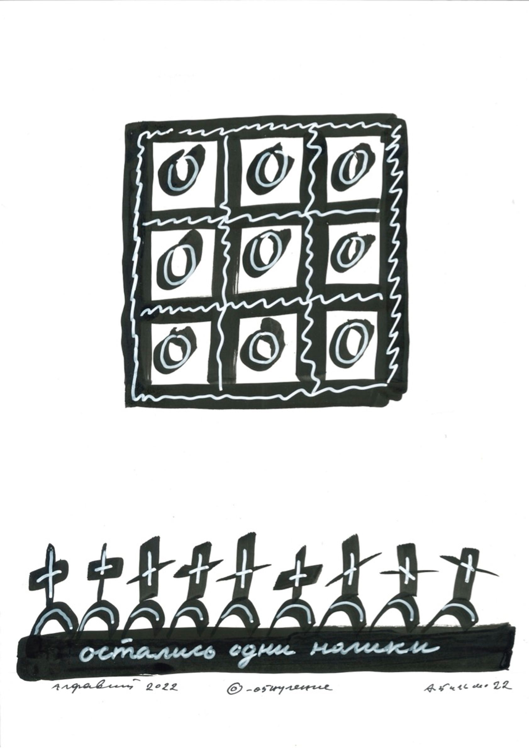 На выставке в рамках форума «СЛОВОНОВО» в Черногории художник Андрей Бильжо представил новый цикл «Азбука — 2022» — антивоенный и антитиранический эпос, по буквам передающий весь пафос происходящего. The Insider публикует продолжение цикла.