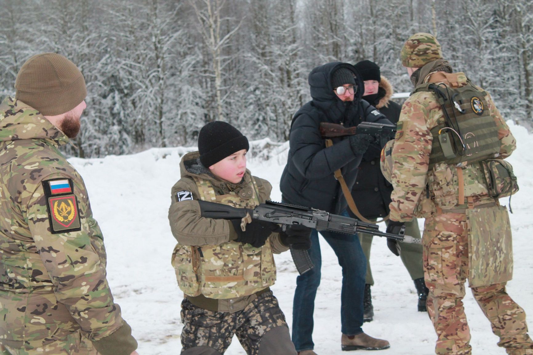 На занятиях «тренеры» одевают десятилетних детей в военную форму с нашивкой Z и учат пользоваться автоматом: