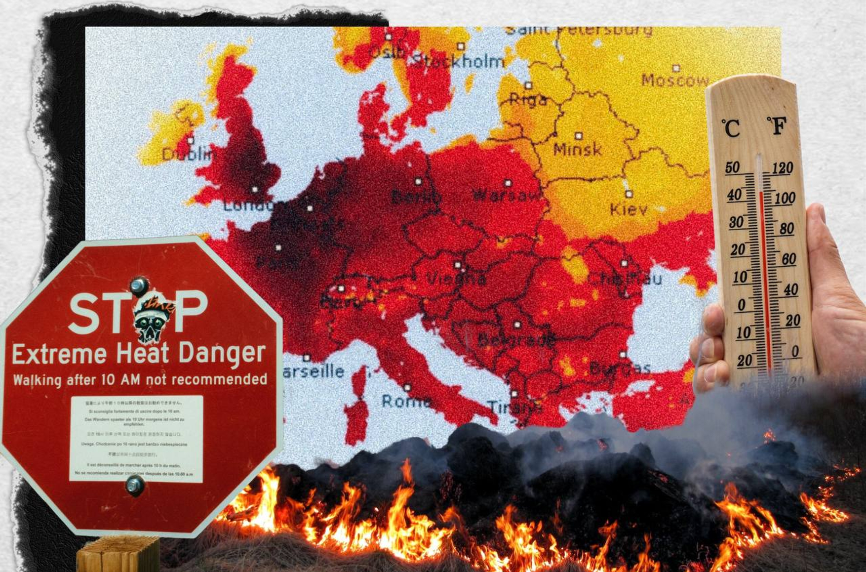 В Китае, чтобы спастись от высоких температур, люди носят шляпы с вентиляторами и фейскини — маски, закрывающие все лицо, с отверстиями лишь для глаз и носа. Испанцы жалуются, что в такую жару не могут спать, курьеры в Венгрии отказываются от работы, опасаясь теплового удара, а итальянцы говорят, что в жару постоянно чувствуют себя уставшими и более раздражительными. Низкая работоспособность — одно из последствий экстремальной жары.