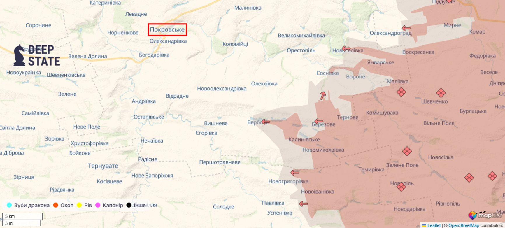 Российские войска вторглись на территорию Днепропетровской области 24 августа, оккупировав села Запорожское и Новогеоргиевку (1, 2). Это вторжение стало результатом упорных боев на южно-донецком направлении. Причем впервые об «успехах» в этой области российское ведомство заявляло еще в июле, сообщив о «захвате» села Дачное. Однако, согласно данным украинского проекта DeepState, боевые столкновения за Дачное всё еще продолжаются, а само село остается в «серой зоне».