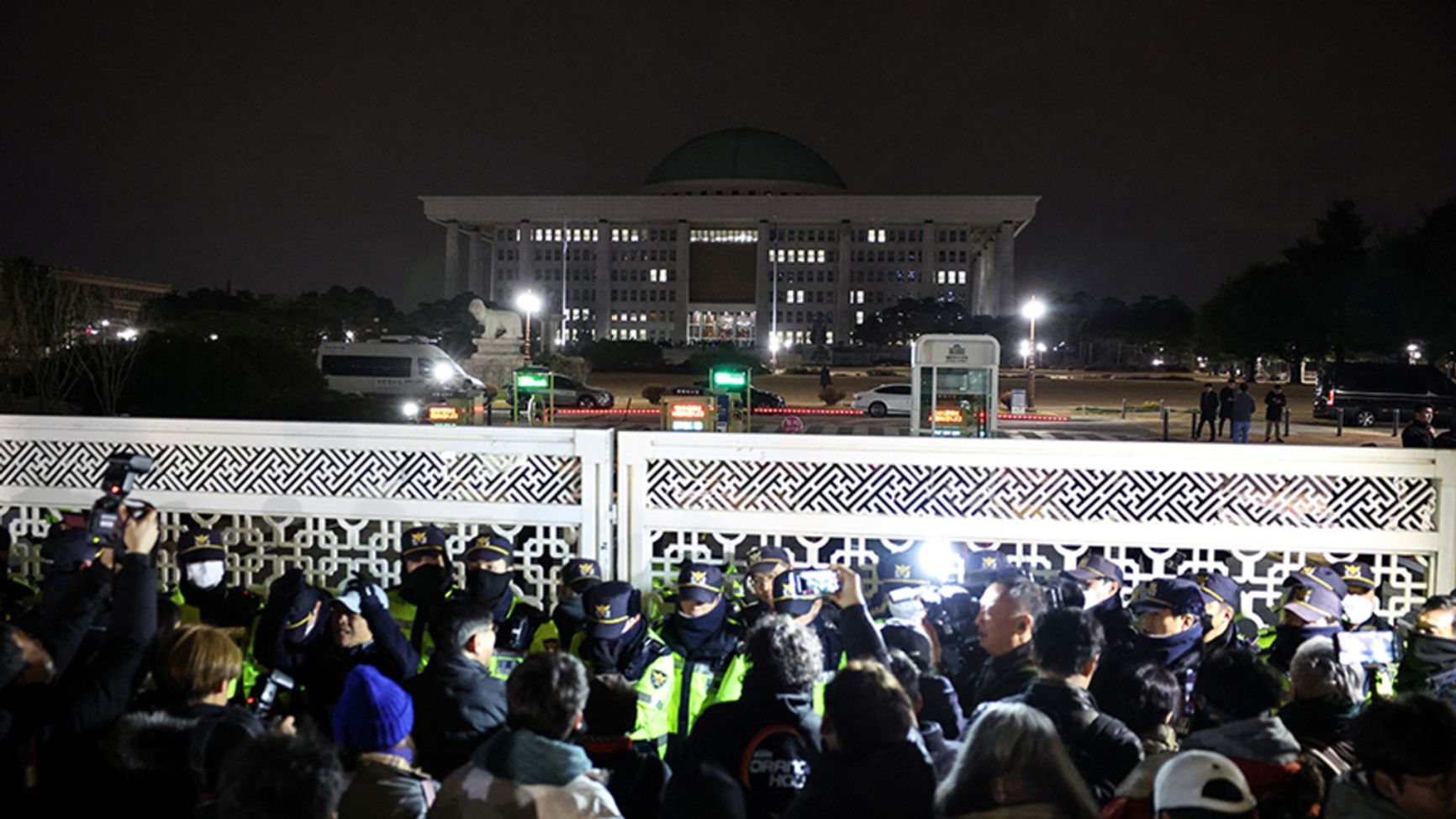 Первый же пункт этого указа полностью нарушал действующее законодательство — ведь чрезвычайное положение нельзя использовать для прекращения деятельности парламента. Однако именно к этому Юн и стремился. По указанию президента здание было оцеплено полицией, а в направлении парламента вылетели вертолеты со спецназом.