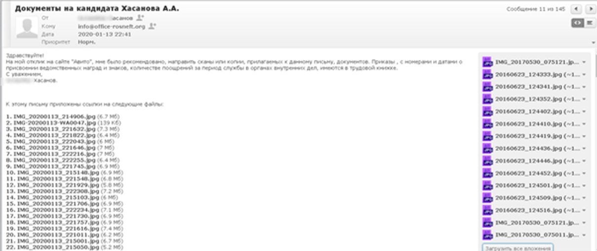 Команда зарегистрировала (опять же через российского регистратора) доменное имя office-rosneft.org, чтобы использовать домен для электронной переписки с кандидатами.